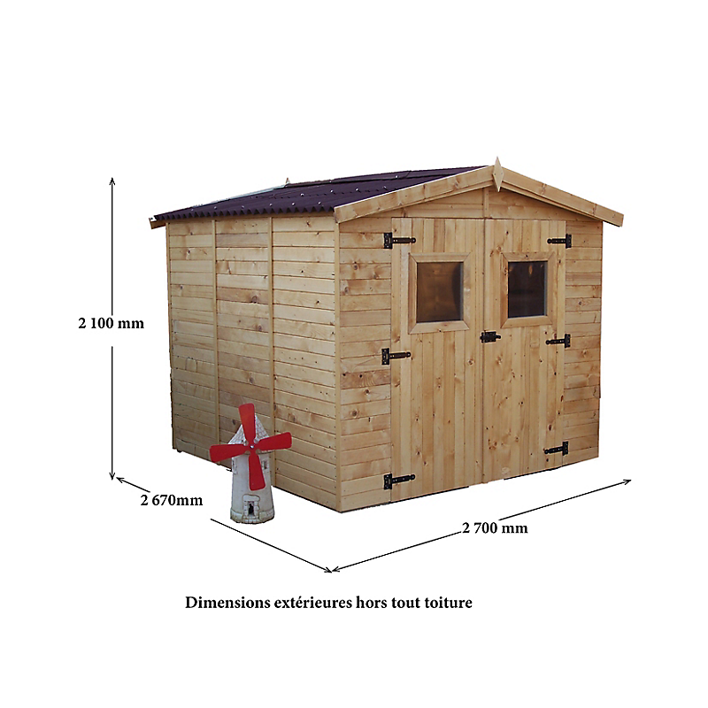 - Plancher: Réalisé en panneaux de particules traités épaisseur 12 mm à fixer sur 5 solivettes en bois massif section 25 x 40 mm.