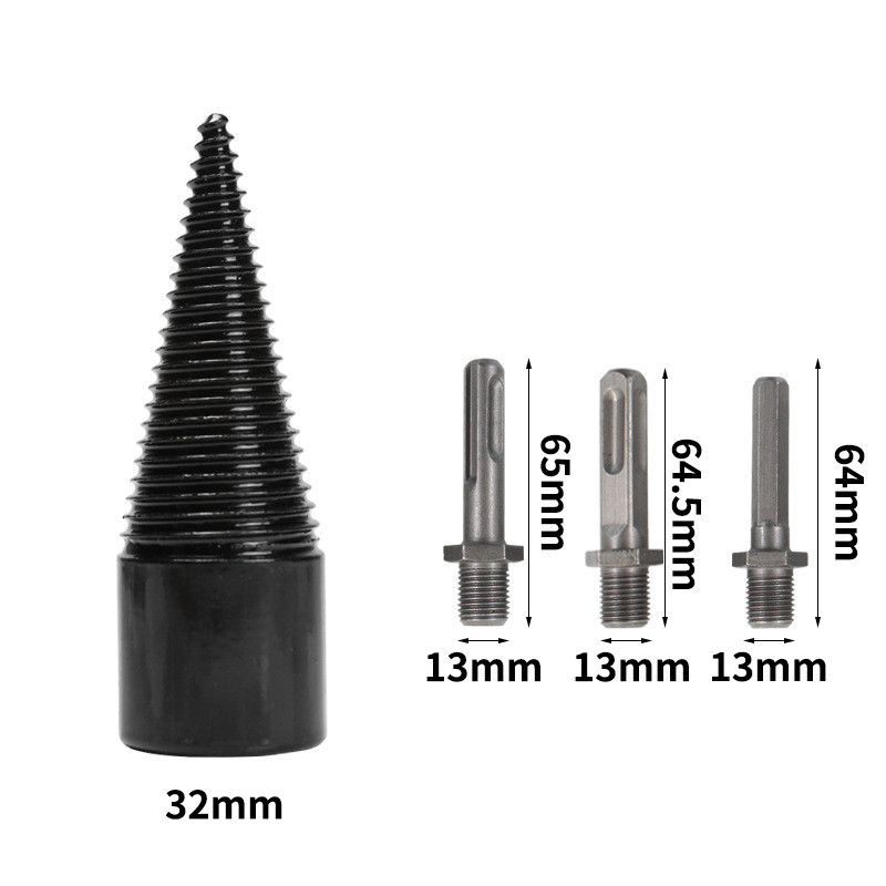 Foret à bois pour fendre le bois, comprenant différents modèles de manche pour différentes exigences. Fabriqué en acier de haute qualité, résistant aux chocs et à l'abrasion. Le foret étagé a une conception rainurée avec des rainures qui empêchent le glissement et améliorent l'efficacité. La fendeuse à bois est parfaite pour fendre rapidement et facilement, par exemple, du bois de chauffage. Monté sur perceuse.