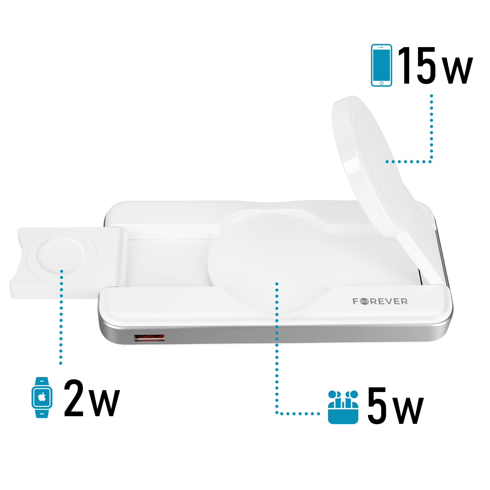 | Libellé | Forever Powerbank MagSafe 3 en 1 pour iPhone / Apple Watch / AirPods 10000mAh Blanc |