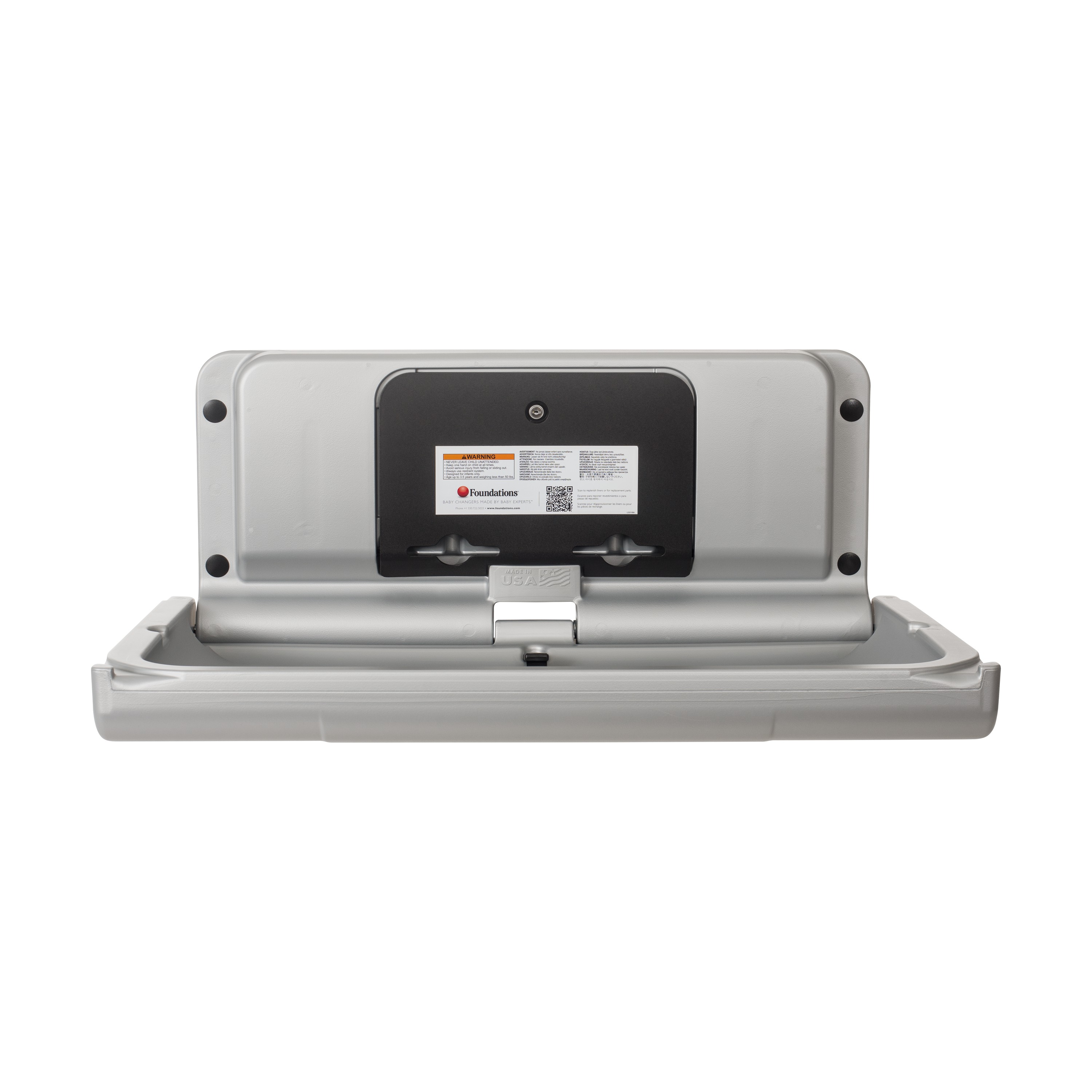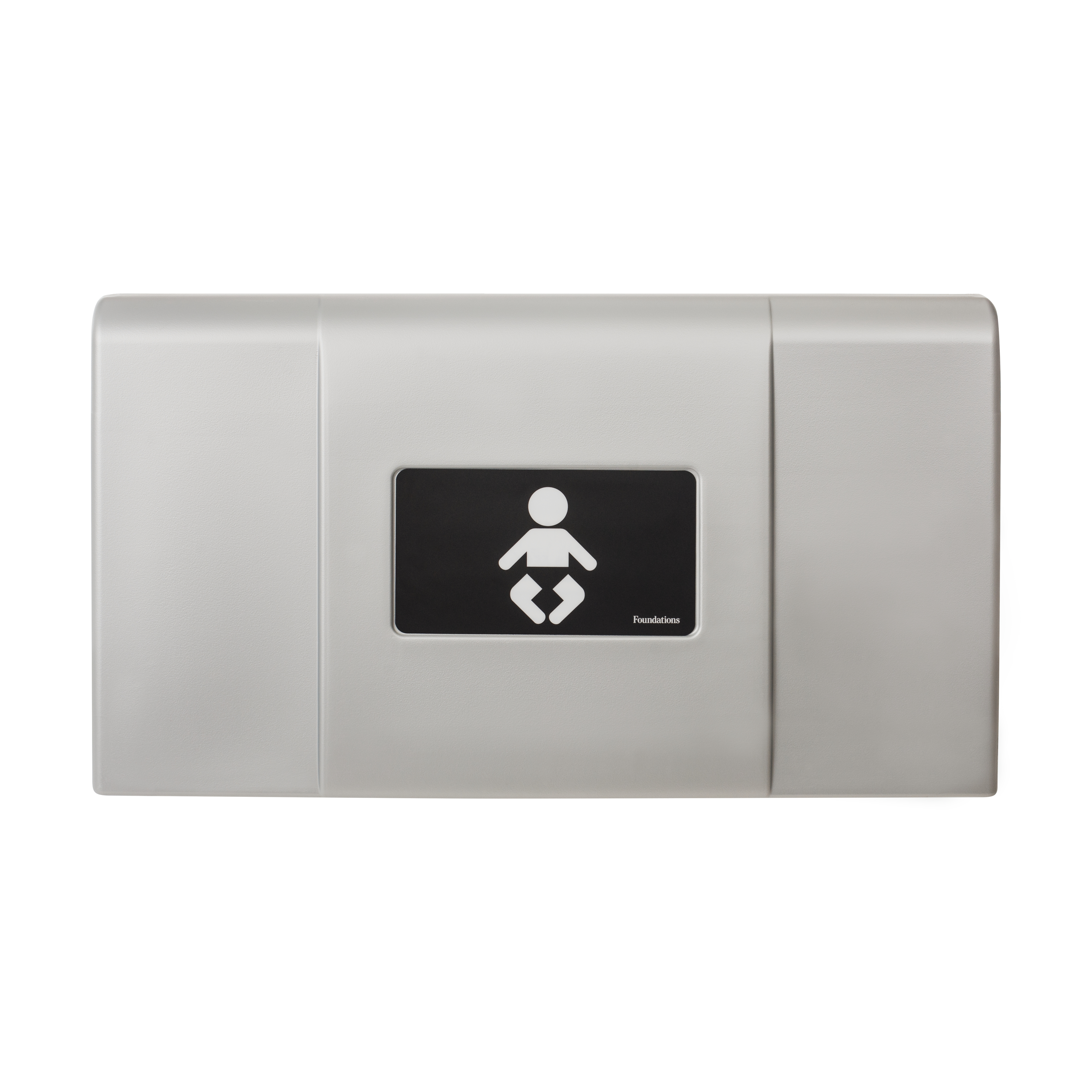 La table à langer Ultra 200-EH PE de Foundations, de couleur grise, présente un design chic et subtil qui s'adapte à tous les décors de toilettes.
