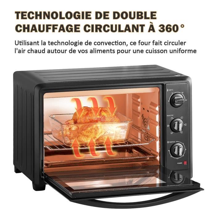 Four de table électrique 24 L - 6 modes de chaleur, minuteur, température réglable, porte double verre et