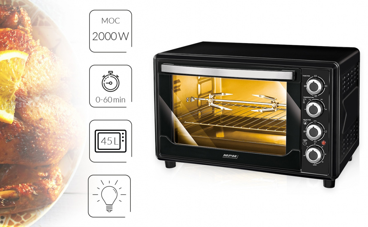 Four électrique de table à convection 45 litres, acier inoxydable,minuterie 2000 Noir MPMMPE/07T