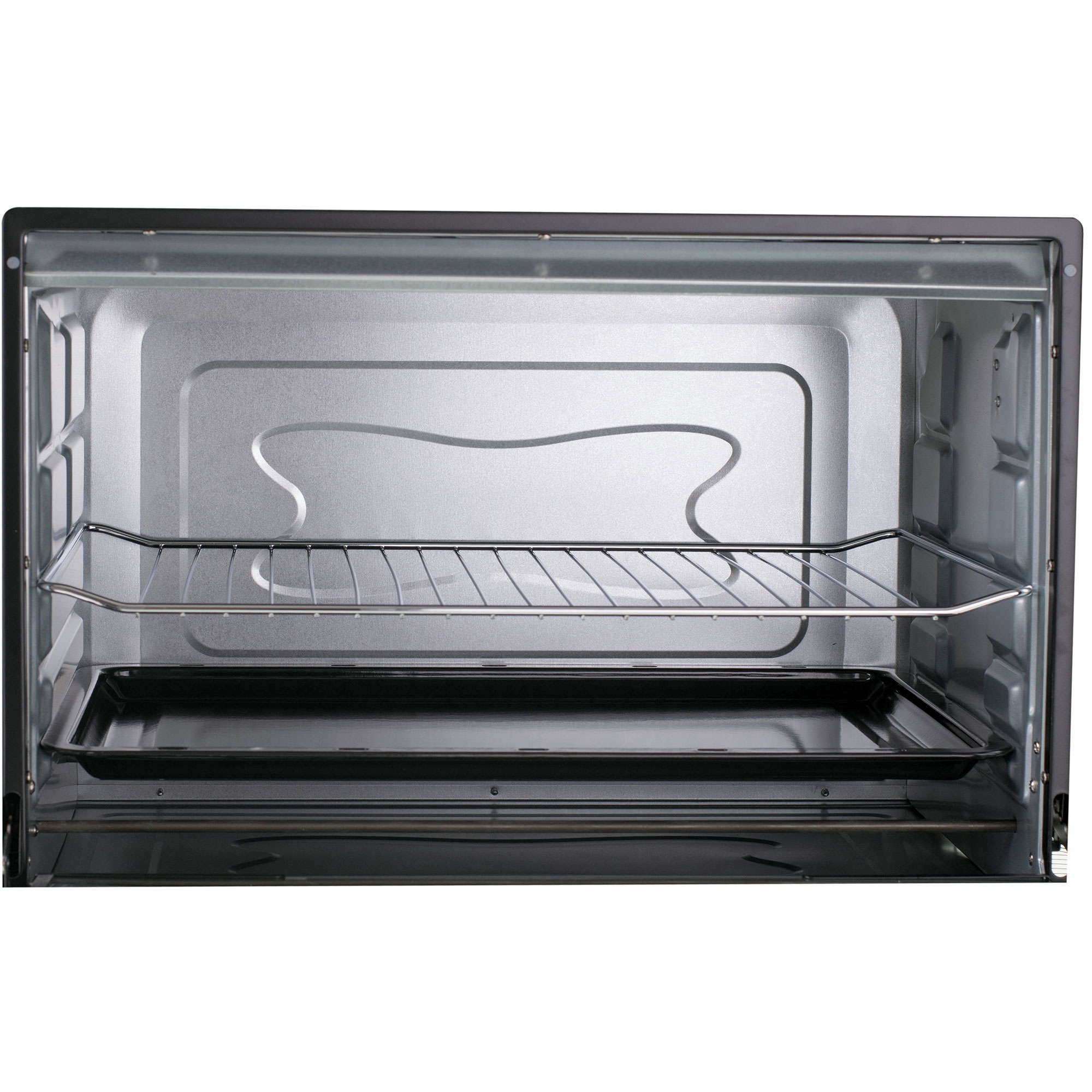 - Intérieur en Acier Inoxydable : L'intérieur en acier inoxydable est facile à nettoyer et comprend un plateau de gril et un plateau de cuisson. La porte en verre robuste facilite le maintien de la température.
