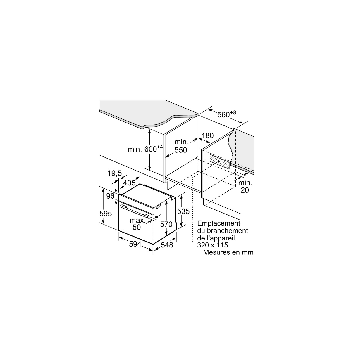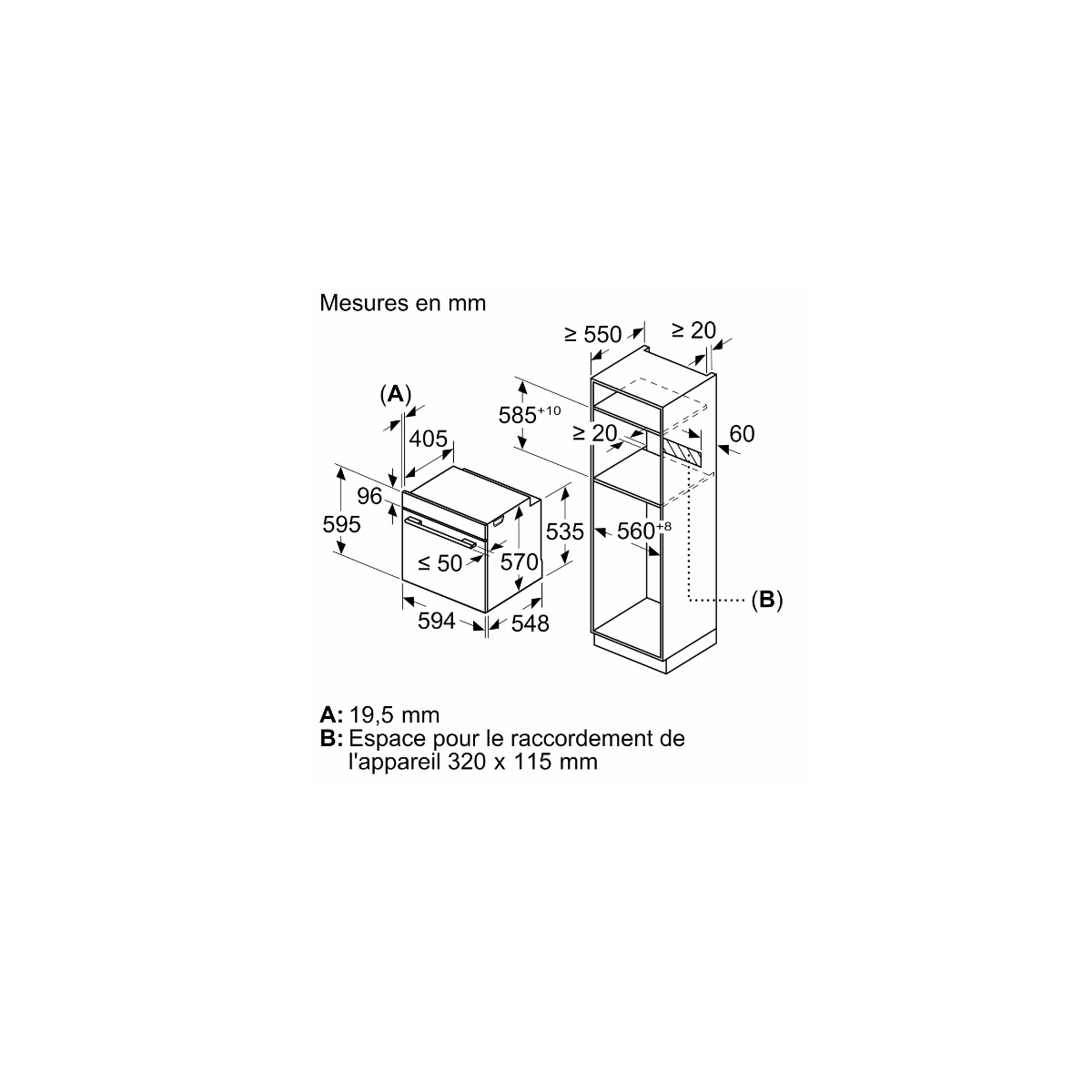 Dimensions d'encastrement (HxLxP en cm) : 60 x 56 x 55.