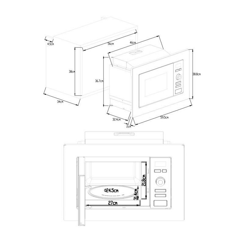 | Libellé | Four micro-ondes encastrable CONTINENTAL EDISON MO20IXEG L59,5 x H38,8 cm x P34,35 cm 20L Inox Grill |