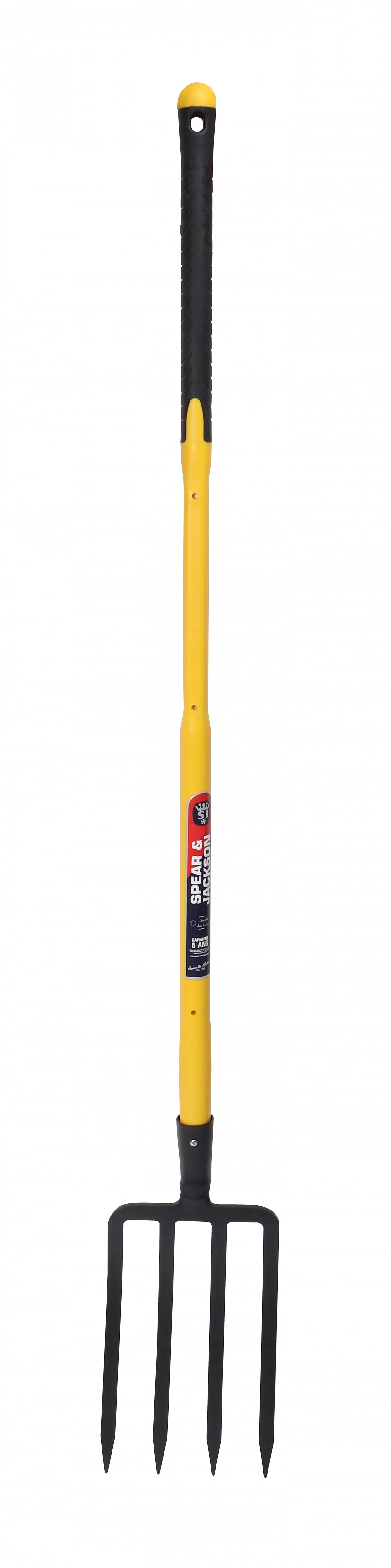 Munie de 4 dents triangulaires de 30 cm. Manche pomme trimatière de 110 cm ultra résistant en fibre de verre, polypropylène et softex. Emmanchage à douille renforcée. Tête en acier.