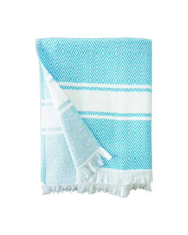 Fouta doublée éponge Chevron Turquoise 90x160 380g/m²