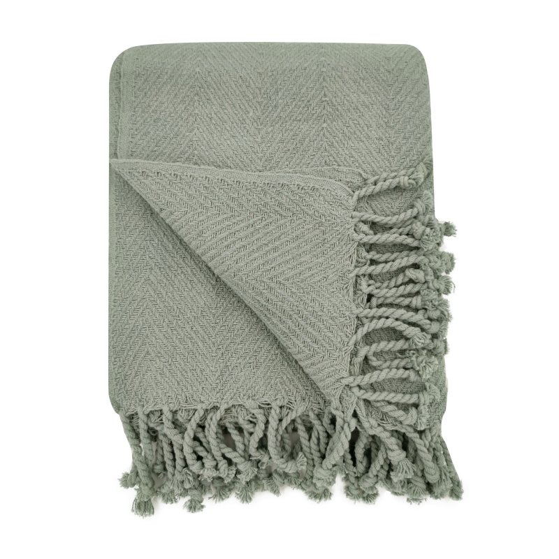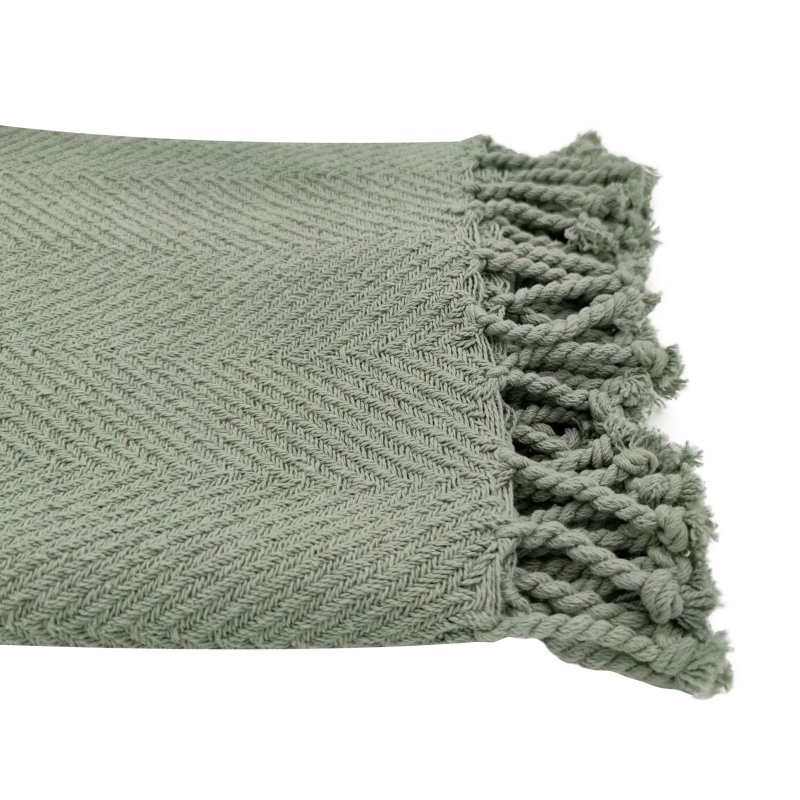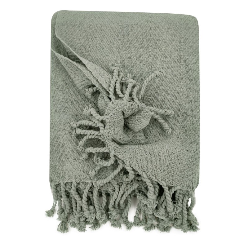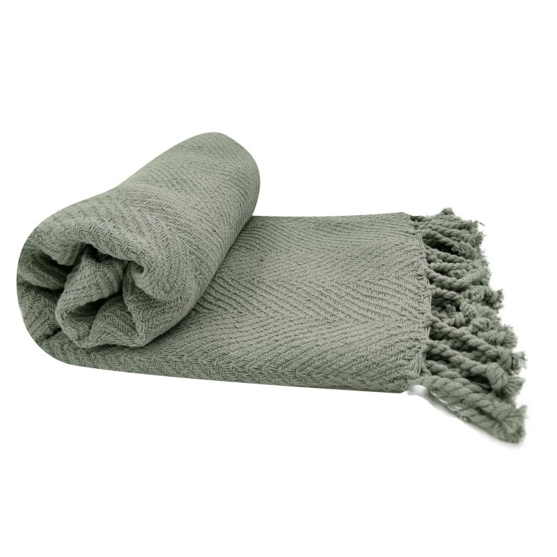 Fouta, Jeté de Lit, Plaid 100% Coton 120 x 150 cm avec Franges Jacquard Motif Chevrons Ton sur Ton Vert C