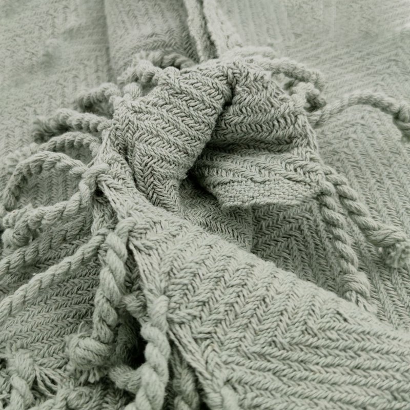 Libellé Fouta, Jeté de Lit, Plaid 100% Coton 120 x 150 cm avec Franges Jacquard Motif Chevrons Ton sur Ton Vert Clair