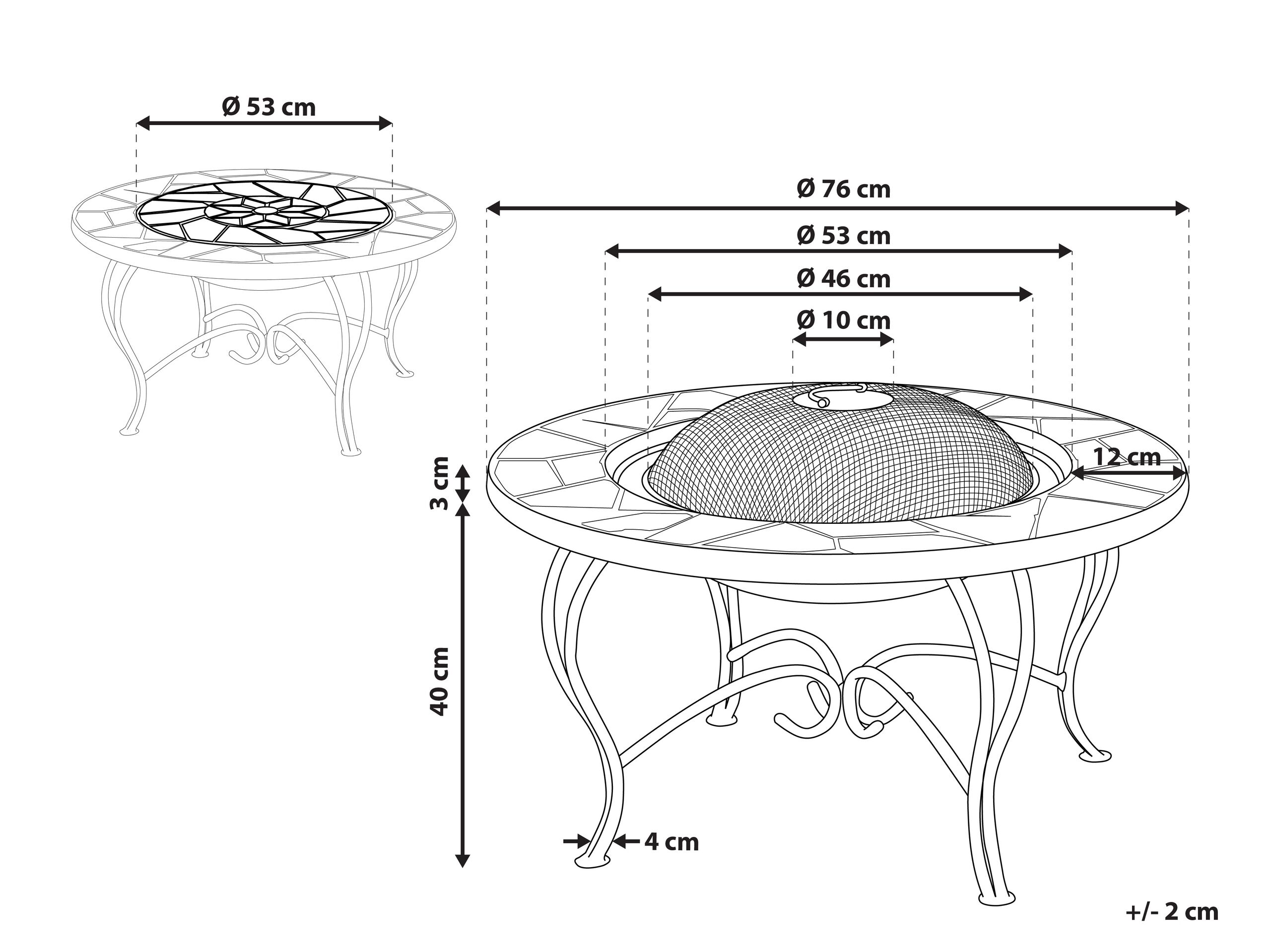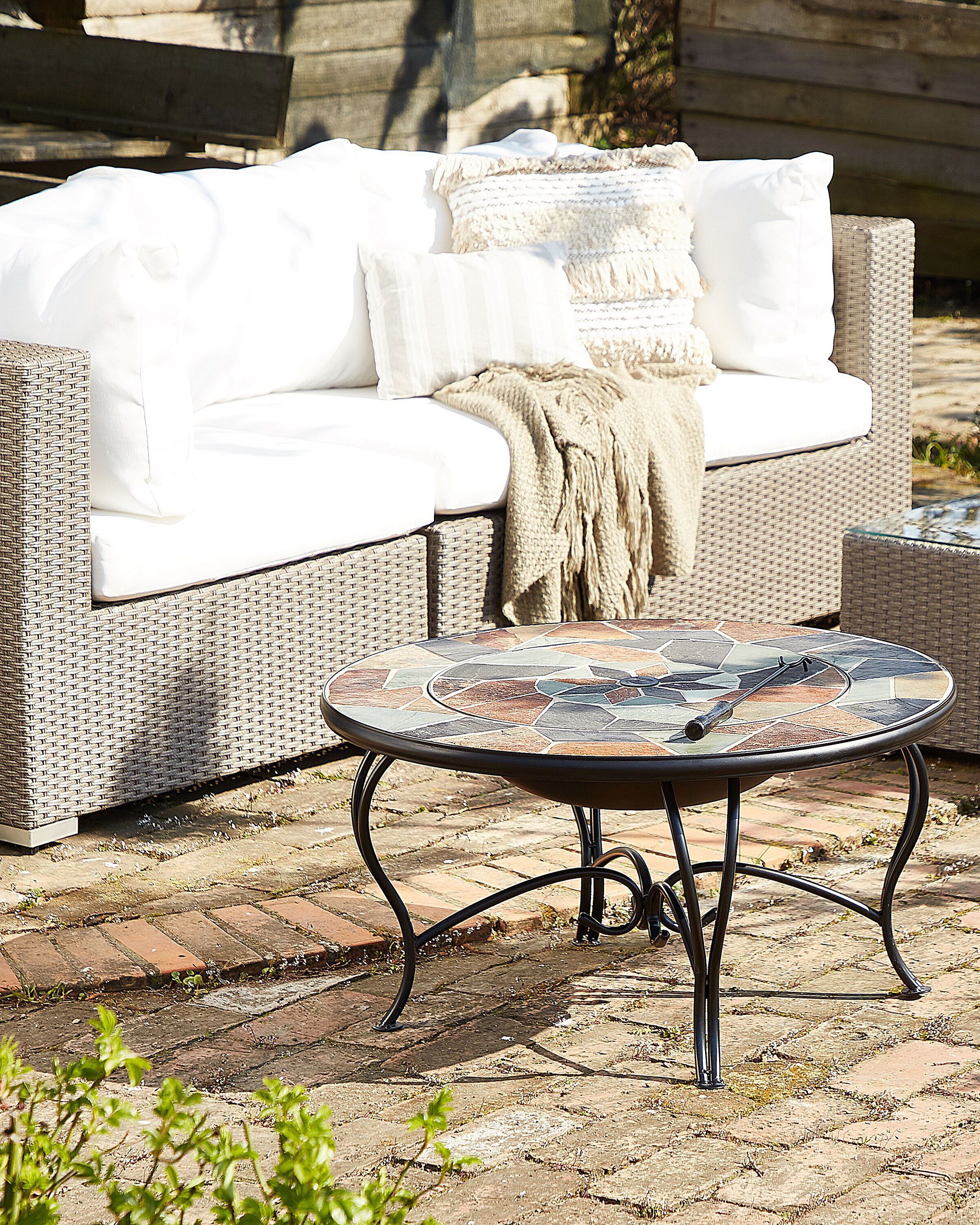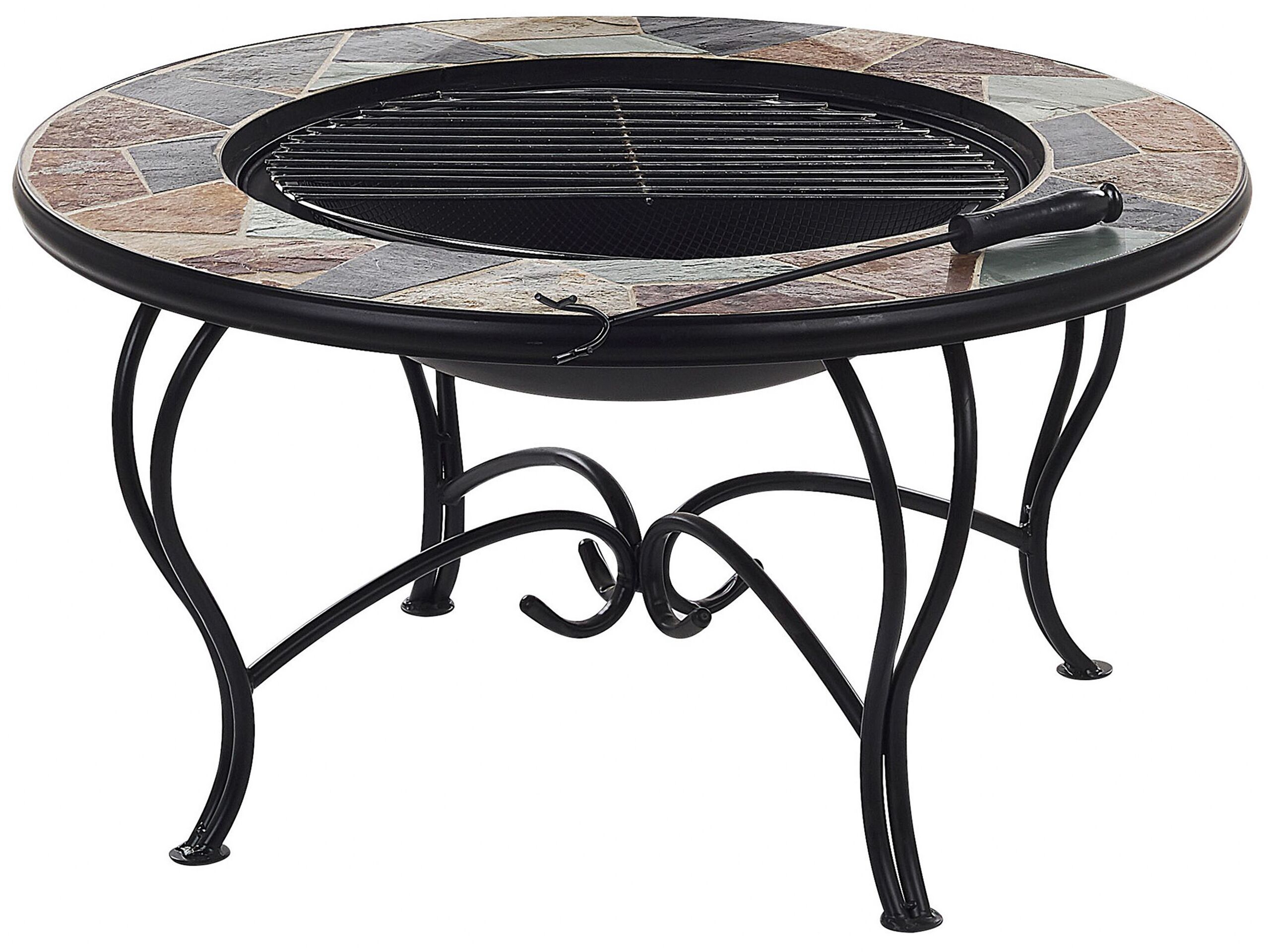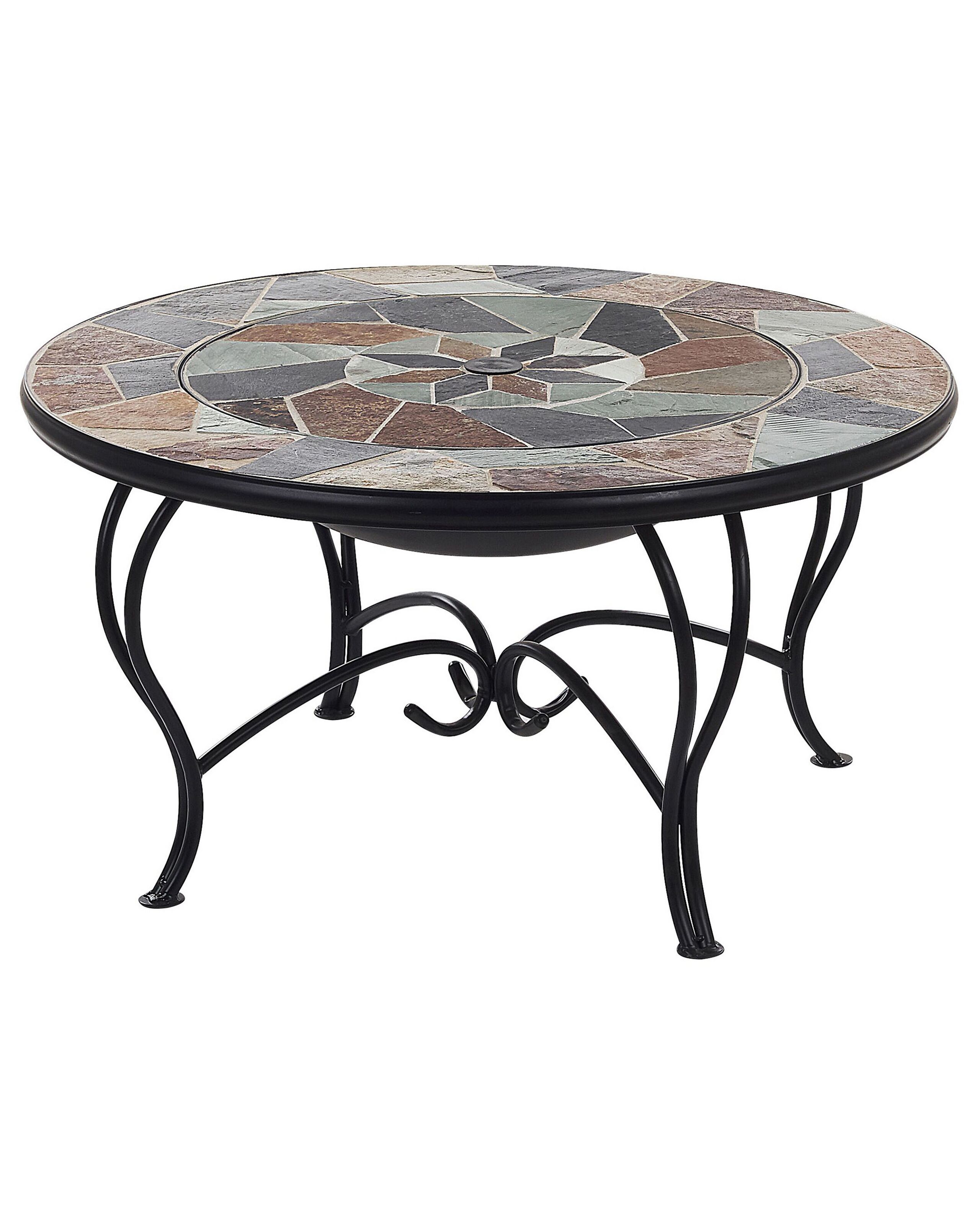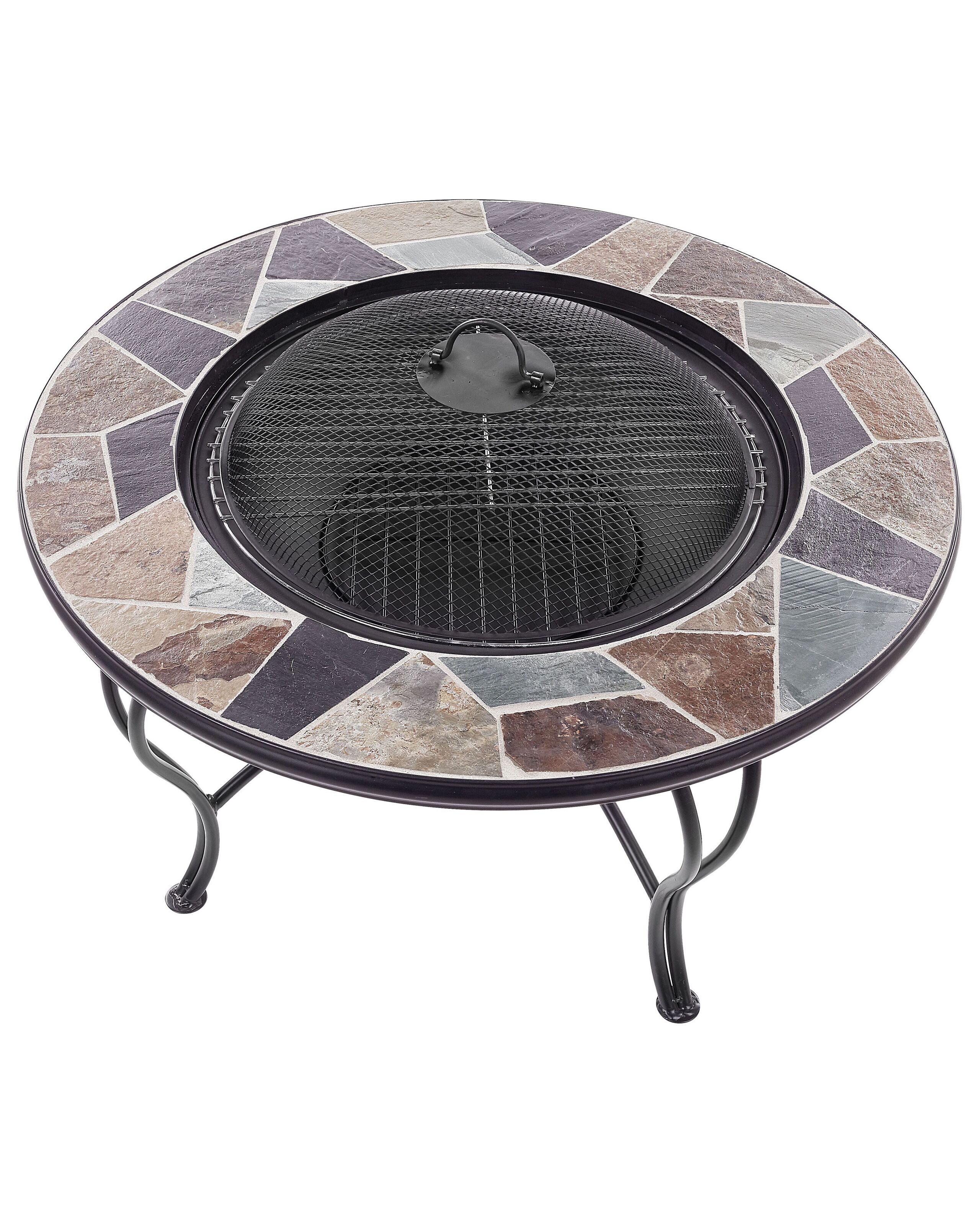 Table basse de jardin avec braséro intégré et plateau au motif mosaïque. Aussi pratique que décorative, cette table basse de jardin avec son braséro intégré constitue tout simplement un mariage parfait entre fonctionnalité et style. Ce meuble d'extérieur très astucieux vous permet de tirer le maximum de votre espace et de vous réjouir pleinement de tous les avantages d'un vrai braséro grill de jardin. Ce dernier est caché sous un couvercle parfaitement assorti au reste du plateau de la table en céramique cassée. Qui plus est, le design hautement décoratif de cette table braséro rafraîchira sans nul doute le look de votre jardin ou terrasse.