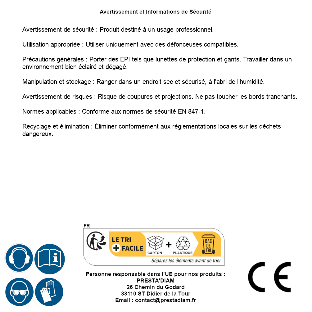 UtilisationPour utiliser ces fraises, il suffit de les installer sur votre défonceuse, de régler la profondeur de coupe souhaitée et de procéder à la découpe. Assurez-vous de porter des équipements de protection appropriés lors de l'utilisation.