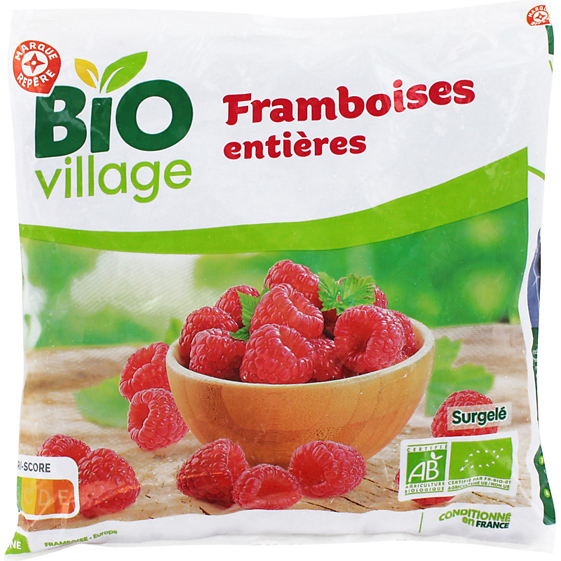 FRAMBOISES ENTIÈRES ISSUES DE L'AGRICULTURE BIOLOGIQUE SURGELÉES BIO VILLAGE