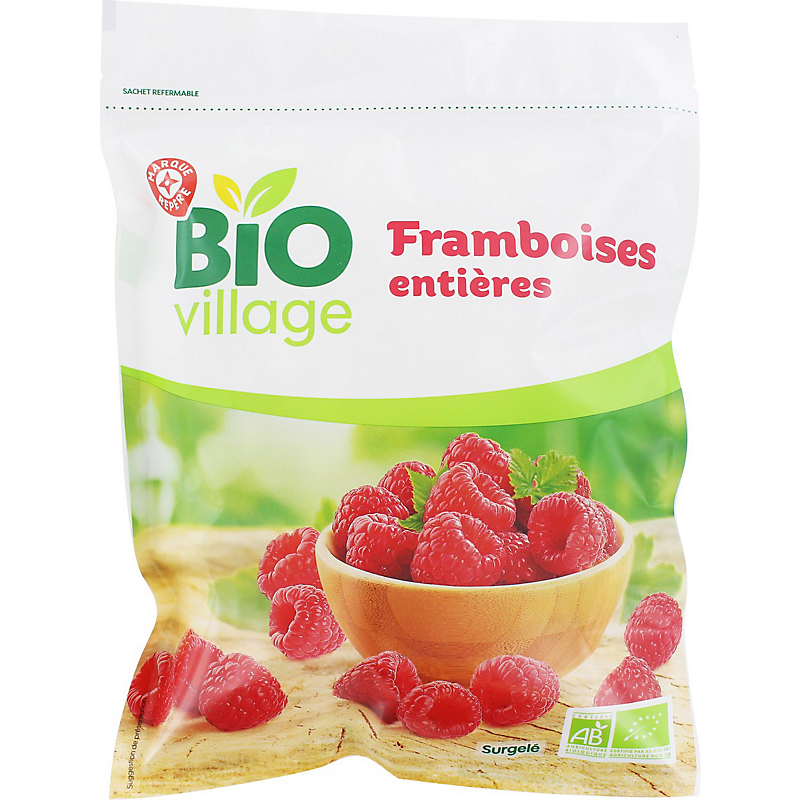 FRAMBOISES ENTIÈRES ISSUES DE L'AGRICULTURE BIOLOGIQUE SURGELÉES BIO VILLAGE