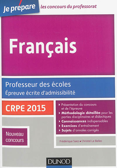 Français : professeur des écoles, épreuve écrite d'admissibilité : CRPE 2015, nouveau concours (Broché)