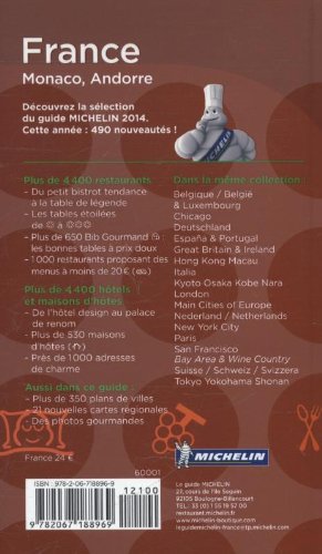 Par ordre alphabétique des communes, une sélection de 8.750 adresses d'hôtels et de restaurants commentée et établie par des inspecteurs Michelin, dans différentes catégories de confort et de prix. Plus de 500 maisons d'hôtes, des hôtels et des palaces sont également répertoriés. Avec 350 plans de ville et 22 cartes régionales pour se retrouver facilement.