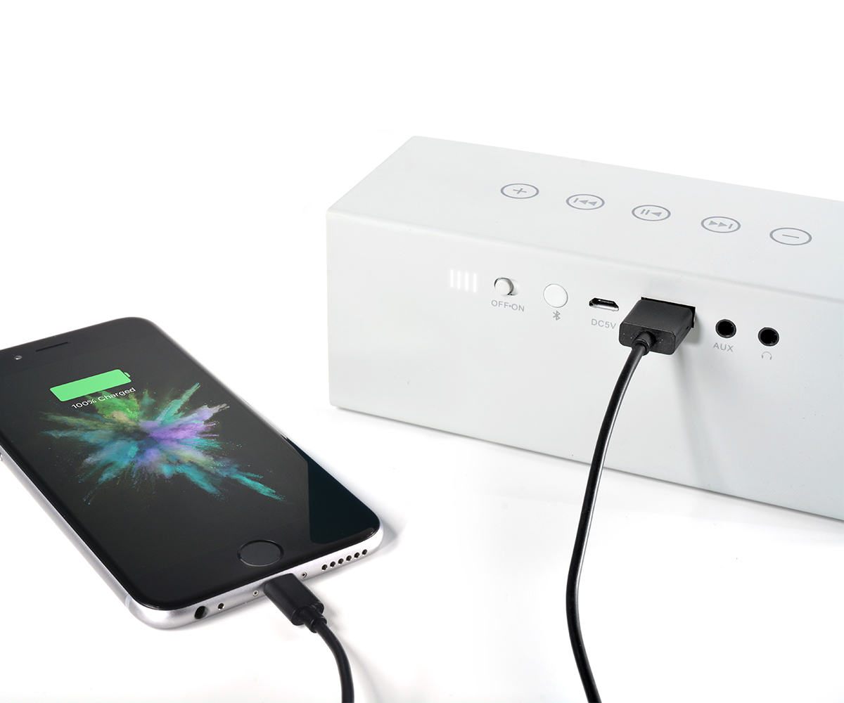 Le Rockbox Brick Fabriq Edition utilise la technologie Bluetooth pour connecter sans fil ton téléphone, ta tablette ou ton notebook. Sa batterie de 4000 mAh signifie une autonomie impressionnante de 20 heures de musique non-stop avec une seule charge. Les DEL d'état de la batterie te permettent de garder facilement un œil sur la charge restante, et le port du Powerbank est très pratique lorsque la batterie de ton téléphone est épuisée. Grâce aux boutons tactiles rétroéclairés, tu as toujours le plein contrôle de ta musique dans devoir sortir ton téléphone de ta poche. Le Rockbox Brick Fabriq Edition est suffisamment petit pour voyager et suffisamment grand pour impressionner tes amis. Emporte ta musique lors de toutes tes sorties et crée l'ambiance de tous tes bons moments.