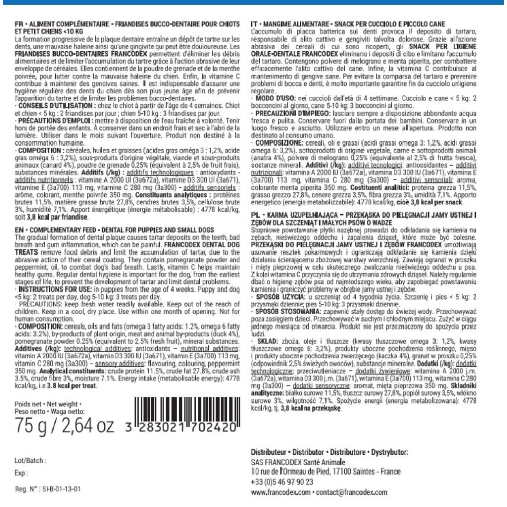 - Friandises Hygiène Bucco-Dentaire 75g Pour chiot et petit Chien<10 kg
