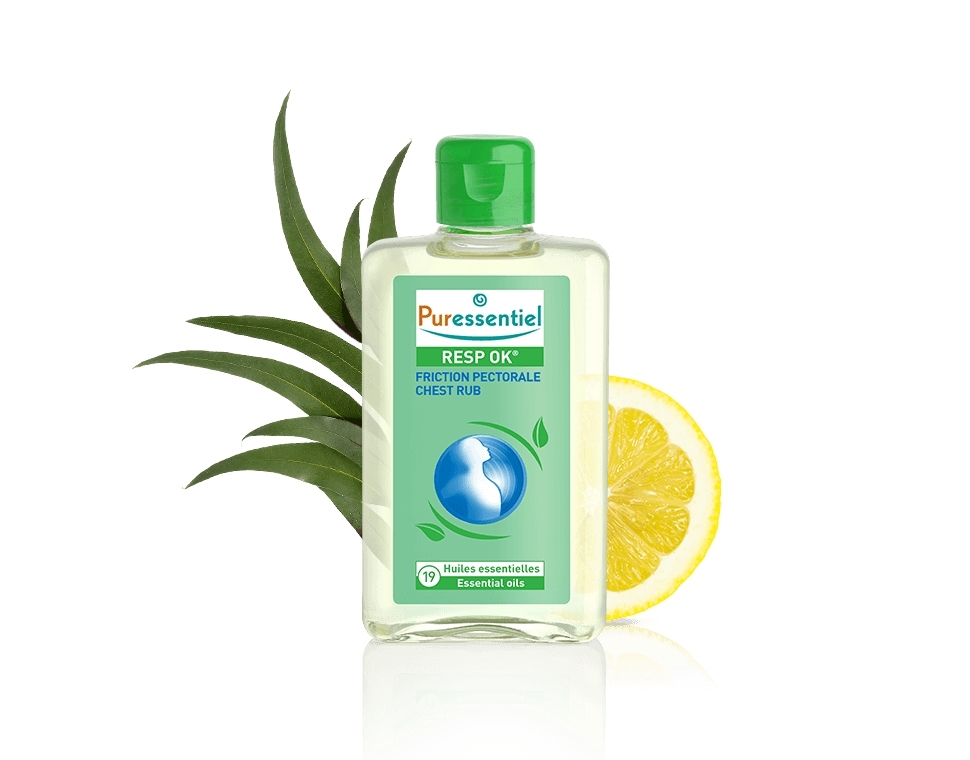 Cette friction Pectorale Resp'OK® est un produit issu de l'aromathérapie. Composée de 19 huiles essentielles HEBBD* (Anis, Bay St Thomas, Cajeput, Cèdre de l’Atlas, Citron, clou de Girofle, Cyprès, Eucalyptus, Lavande officinale, Lavandin grosso, Menthe poivrée, Niaouli, Origan, Pin Sylvestre, Ravintsara, Romarin, Sauge officinale, Tea tree, Thym), elle facilite le bien-être dès les premiers froids (82%(1)) et procure un effet apaisant et calmant (77%(1)). Son parfum a un effet dégageant. Efficacité approuvée par un test d’usage sous contrôle médical. (1) Pourcentages de satisfaction obtenussur 22 volontaires après 28 jours d’utilisation. *Huiles essentielles HEBBD (Huile Essentielle Botaniquement et Biochimiquement Définie).