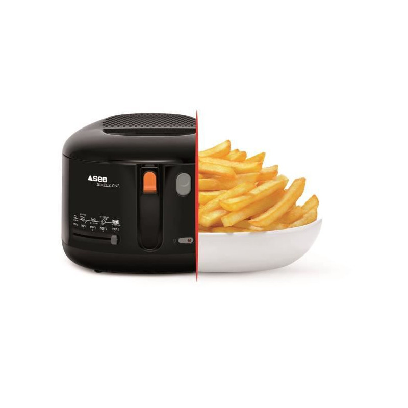 SEB Simply One. Type de produit: Friteuse, Capacité de la friteuse: 1,2 kg, Capacité en huile: 2,1 L. Type de construction: Unique, Couleur du produit: Noir, Type de commande: Boutons, Foie