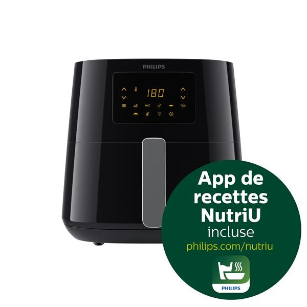 hd9270/96 - friteuse 6.2l 2000w noir - Friteuse Airfryer Essential Philips HD9270.96. Les frites les plus savoureuses avec jusqu'à 90% de matières grasses en moins ! (comparé à des frites fraîches cuites dans une friteuse Philips standard). Airfryer : une technologie qui se perfectionne depuis plus de 10 ans. Technologie brevetée Rapid Air permettant d'utiliser de l'air chaud pour frire, cuire, griller, rôtir et réchauffer tous vos plats et snacks préférés. Des recettes personnalisées selon vos préférences et des plats maison, en toute simplicité.Téléchargez l?application NutriU, recevez des recommandations de recettes quotidiennes qui tiennent compte des préférences de votre famille. Les recettes de l'application sont choisies par des experts en nutrition. Plus vous utilisez NutriU, mieux l'application adaptera ses idées de recettes à vos besoins. Trouvez l'inspiration auprès d'autres cuisiniers et cuisinières, et suivez des personnes aux goûts proches des vôtres. Écran tactile avec 7 préréglages : appuyez sur un bouton pour cuisiner. Les programmes préréglés permettent de cuire des en-cas surgelés, des frites fraîches, de la viande, du poisson, des pilons de poulet, des gâteaux et même des légumes grillés. Sa conception exclusive en étoile fait circuler l'air chaud afin d'obtenir de délicieux aliments croustillants à l'extérieur et tendres à l'intérieur, le tout avec très peu d'huile ajoutée. Passez à table quand vous êtes prêt. Sélectionnez le mode de Maintien au chaud pour maintenir vos aliments à la température idéale jusqu'à 30 minutes. Poignée froide pour une prise en main facile du panier. Le panier QuickClean de l'Airfryer est doté d'un revêtement anti-adhésif facilitant le nettoyage. La friture à l'air vous épargne les odeurs de la friture traditionnelle dans la maison. Livrée avec une grille double niveau supplémentaire avec accessoire brochettes. - Type de produit : Friteuse électrique.Matériau du corps de l'appareil : Plastique.Puissance : 2000 W.Capacité frites : 1,2 Kg.Capacité huile : 6,2 L.Thermostat réglable : oui.Nombre de programmes : 7.Cuve amovible : oui.Parois froides : oui.Le + produit : Facile à utiliser et à nettoyer.Bouton marche/arrêt.Arrêt automatique.Signal Prêt-à-utiliser.Thermostat.Témoin lumineux.Affichage LED.Écran tactile. Réglage de la durée.Longueur du cordon : 0,8 m.Coloris : Noir.Largeur : 403 mm.Profondeur : 315 mm.Hauteur : 307 mm.Poids net : 5,55 Kg.