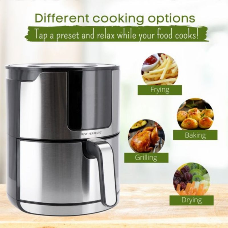 Just Perfecto 4L - 1400W - avec écran tactile LED - acier inoxydable - Friteuse à air chaud - Friteuse sans huile - Friture, grillade, cuisson, rôtissage et friture - 8 programmes - va au lave-vaisselle - protection du chauffage - minuterie
