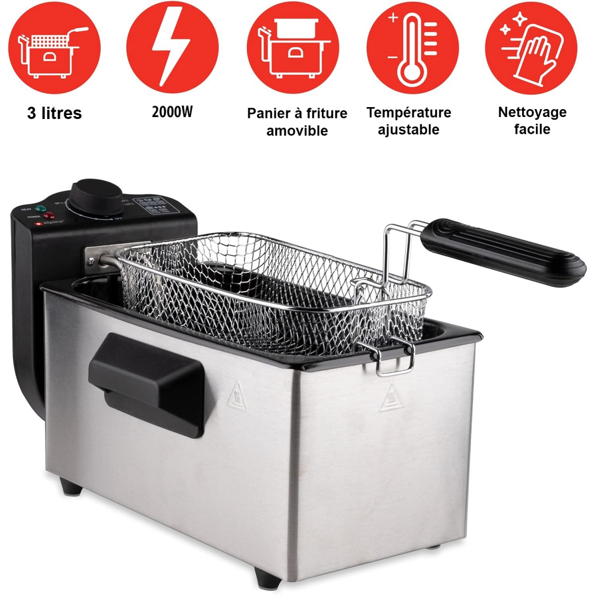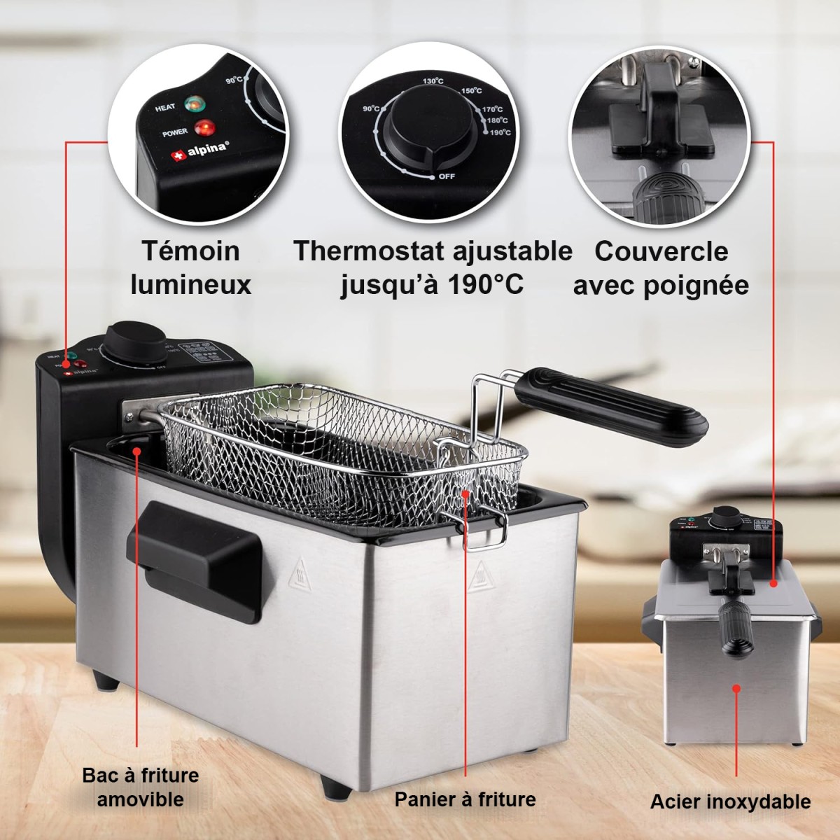 Friteuse électrique à huile Cuve 3L 2000W 190°C ALPINA