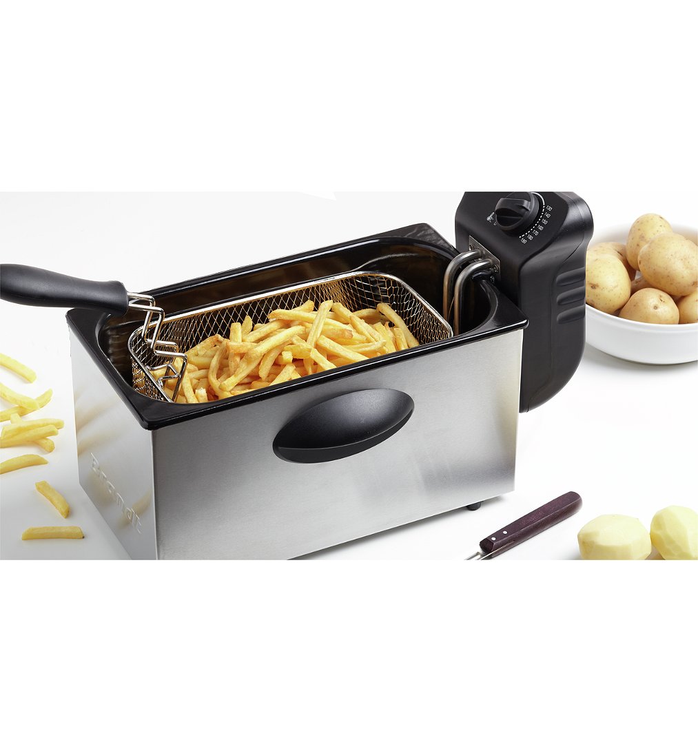 3L d'huile et 1kg de frites, panier cuve et couvercles amovibles, hublot de contrôle, thermostat réglable, 2000W