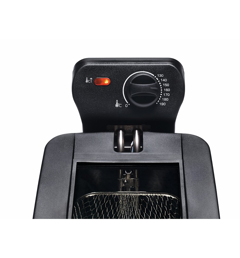 Friteuse qui fait l’affaire pour 2 personnes. Possibilité de régler la température de l’huile. Seul bémol pour le couvercle qui n’est pas pratique.