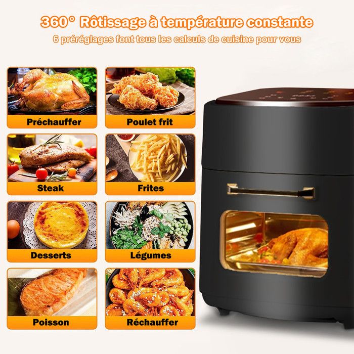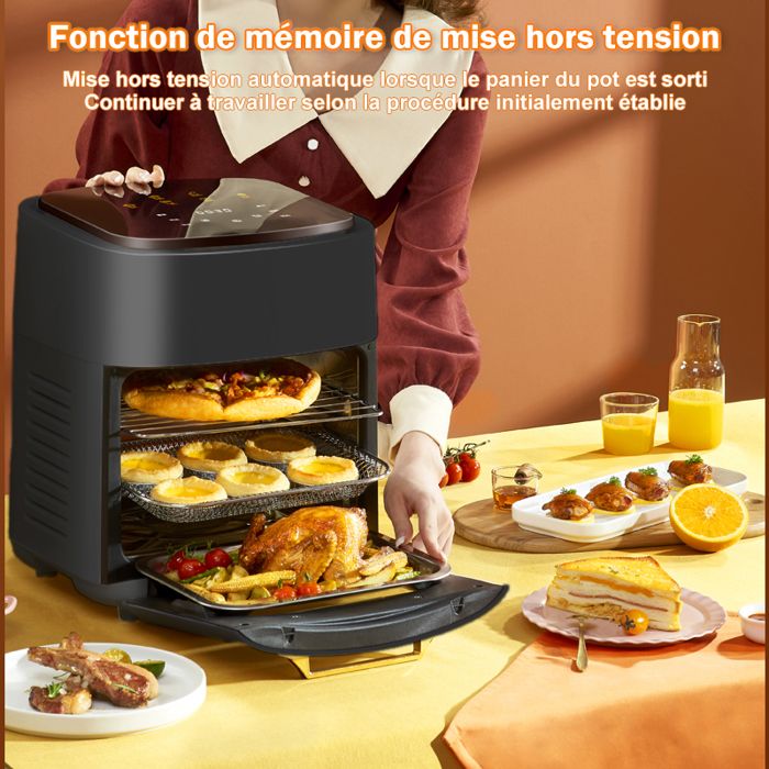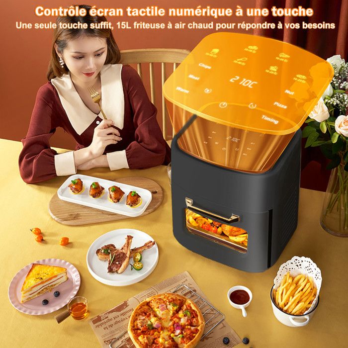 | Libellé | Friteuse sans huile 15L, Mini-four à Air avec Plat cuisson/Fenêtre visible/Écran tactile/2h Thermostat, 1400W Friteuse à Air chaud |