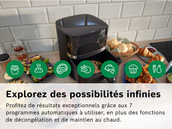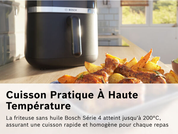 L'Air Fryer Bosch Série 4 est votre partenaire idéal pour une cuisine saine, rapide et facile. Frire, rôtir, griller, le tout avec peu ou pas d'huile !