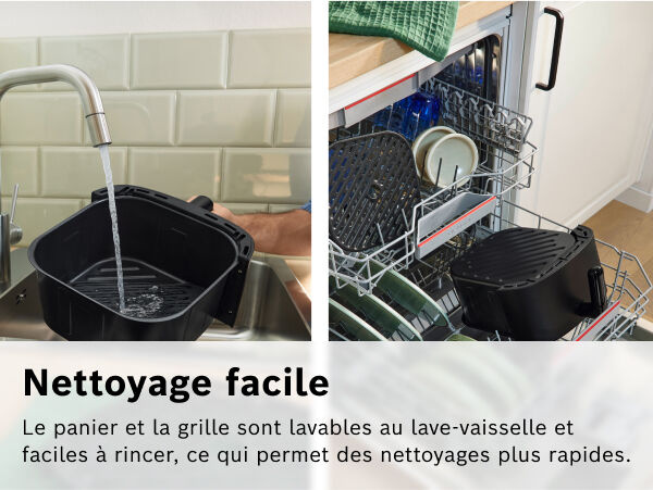 - Nettoyage Sans Effort : Tous les éléments (panier, bac) sont compatibles lave-vaisselle.