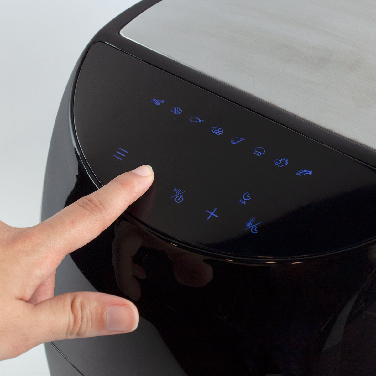 - Écran tactile. Elle intègre un écran LED tactile pour accéder à toutes les fonctions. La durée est réglable de 0 à 60 minutes, et la température de 80ºC à 200ºC.