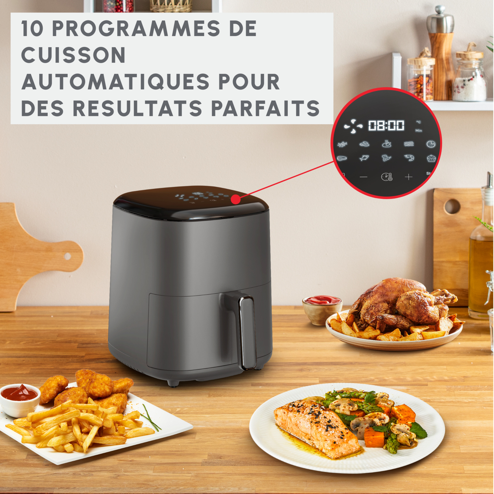 - 10 programmes de cuisson sans surveillance : Frites, Poulet, Steak, Poisson, Desserts, Pizza, Nuggets, Légumes, Crevettes, Bacon