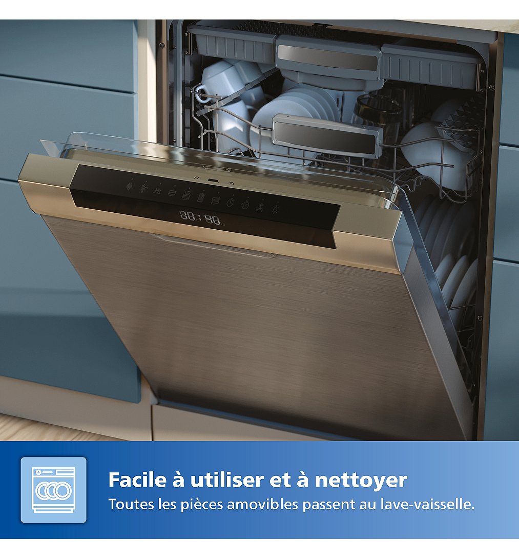 Tous les composants amovibles passent au lave-vaisselle, et le panier QuickClean est doté d’un revêtement anti-adhésif, rendant le nettoyage rapide et simple.