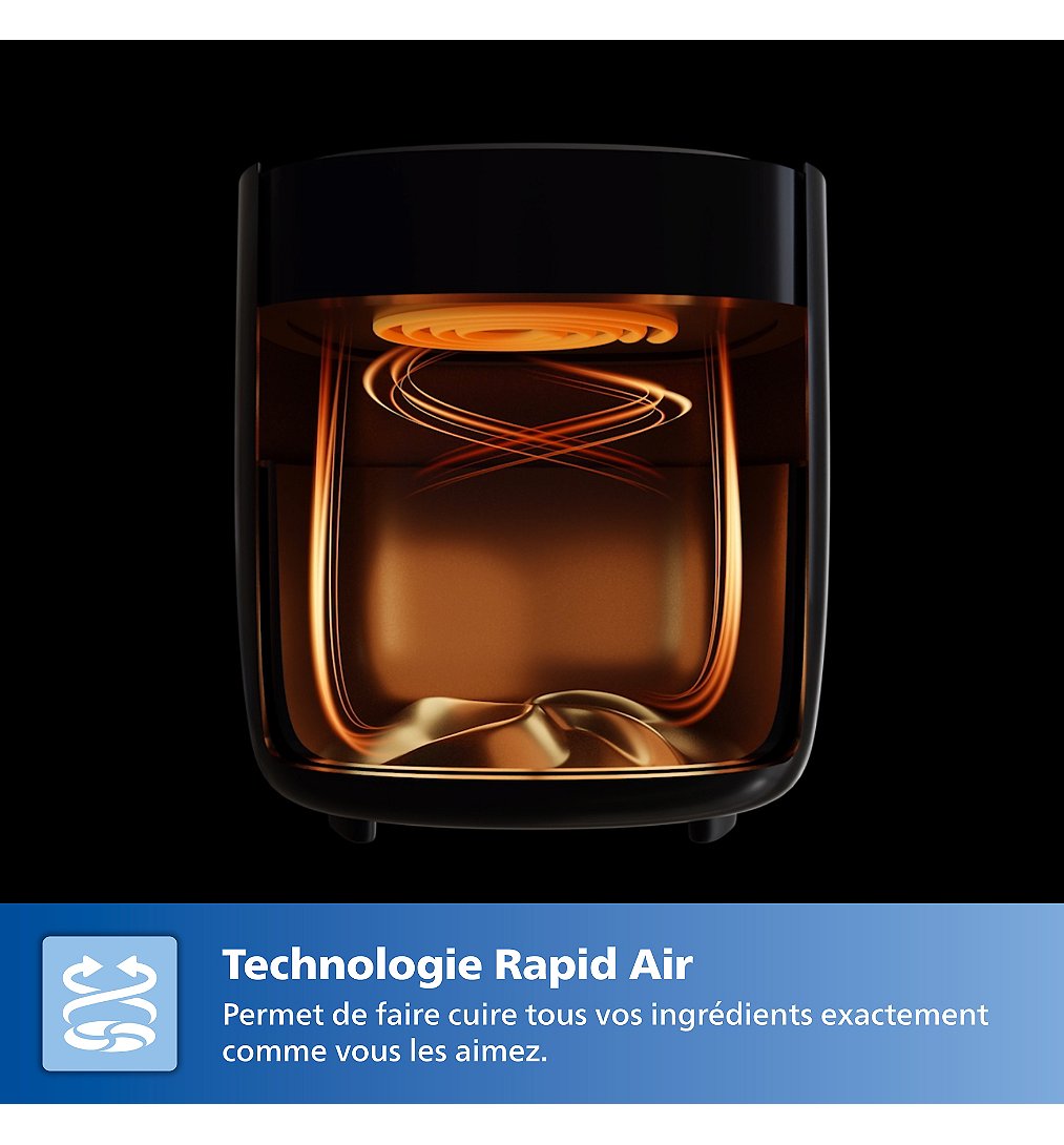 Grâce à la technologie brevetée Rapid Air et à sa conception fond en étoile, l'air chaud circule autour des aliments de manière homogène, garantissant une cuisson croustillante à l’extérieur et tendre à l’intérieur, avec pas ou très peu d'huile ajoutée.