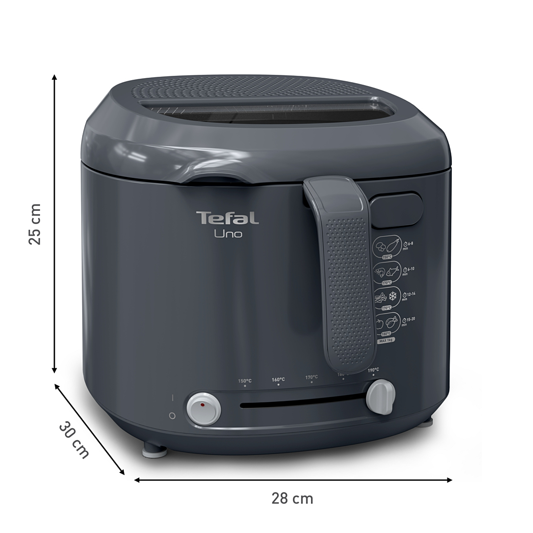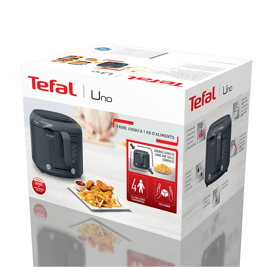 Avec la friteuse électrique Tefal Uno, profitez d'une friteuse compacte, offrant une capacité suffisante pour régaler toute la famille ! Parfaitement adaptée pour une famille de quatre personnes grâce à une capacité généreuse de 1 kg, ses dimensions compactes et sa poignée pliable garantissent un rangement très facile dans toutes les cuisines. Dotée de fonctionnalités pratiques comme un hublot de contrôle, Uno possède aussi un thermostat réglable (de 150 à 190 °C) pour une polyvalence incroyable et une friture parfaite de tous les types d'aliments.