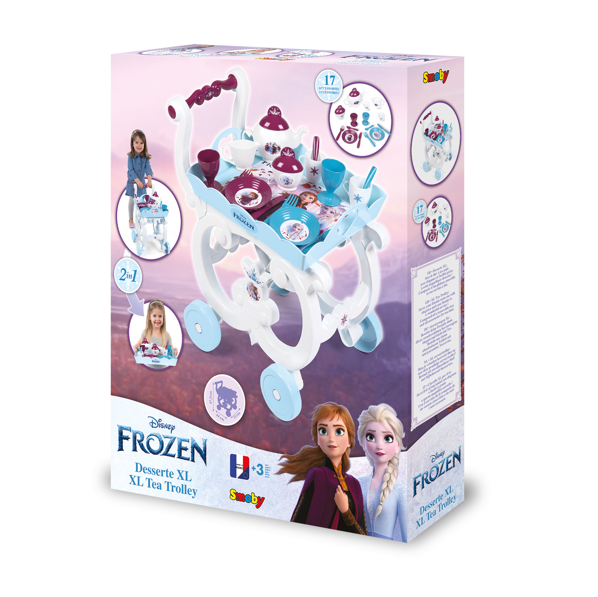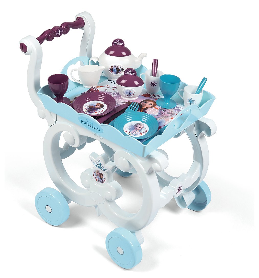 | Plus produit | Desserte La Reine des Neiges 2. Plateau amovible. 17 accessoires : 2 assiettes, 2 verres à pied, 6 couverts, 2 tasses, 1 théière et 1 sucrier avec couvercles, et 1 pot à lait. |