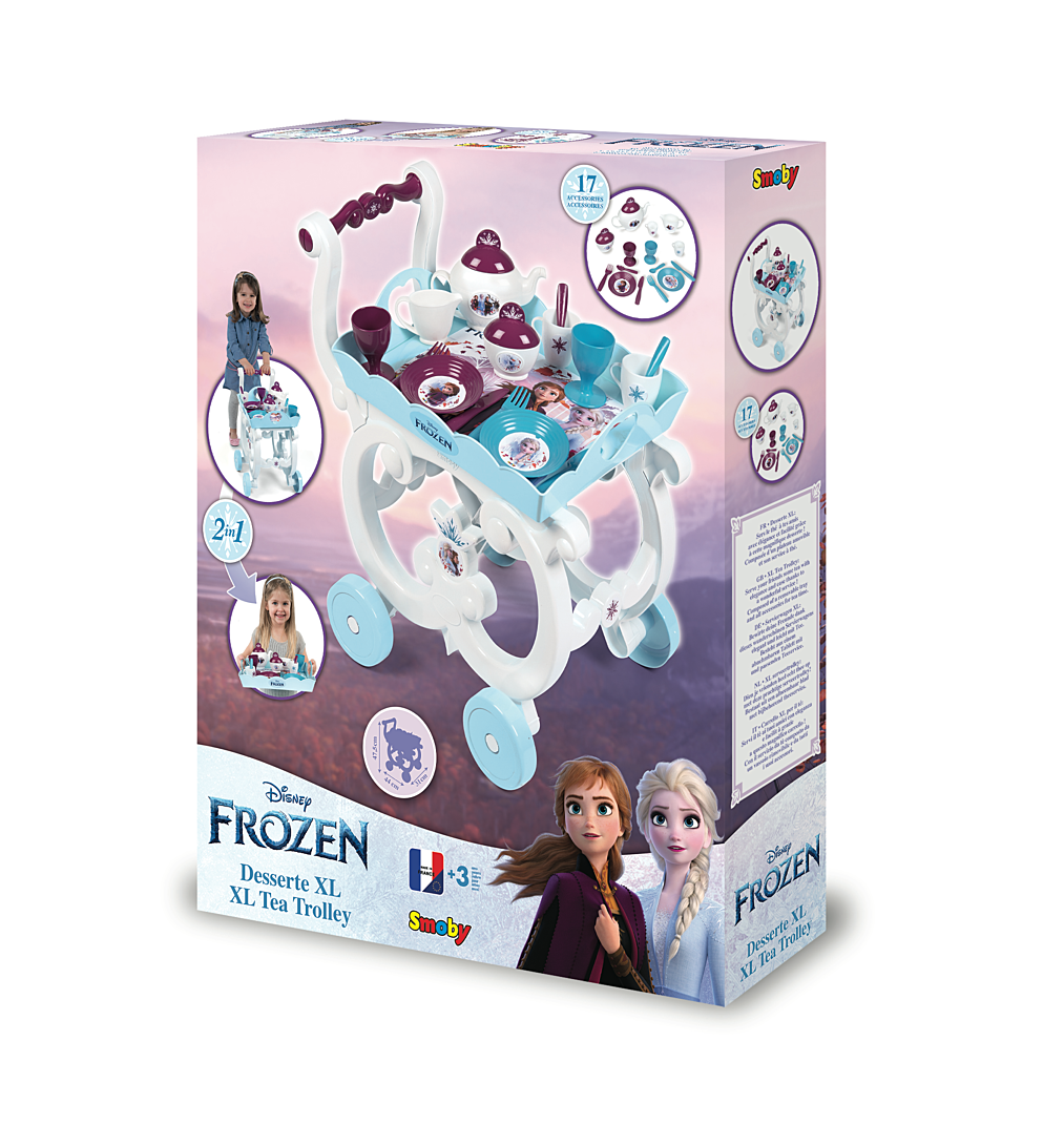 La desserte XL La Reine des Neiges 2 a tout pour te ravir : 2 verres a pied, 2 assiettes, 2 couteaux, 2 cuilleres, 2 fourchettes, 2 tasses, 1 grande théiere, 1 sucrier, et 1 pot a lait. Tres complete, cette grande dinette pourra t'accompagner durant de longues heures de jeu ! A partir de 3 ans. Made in France.
