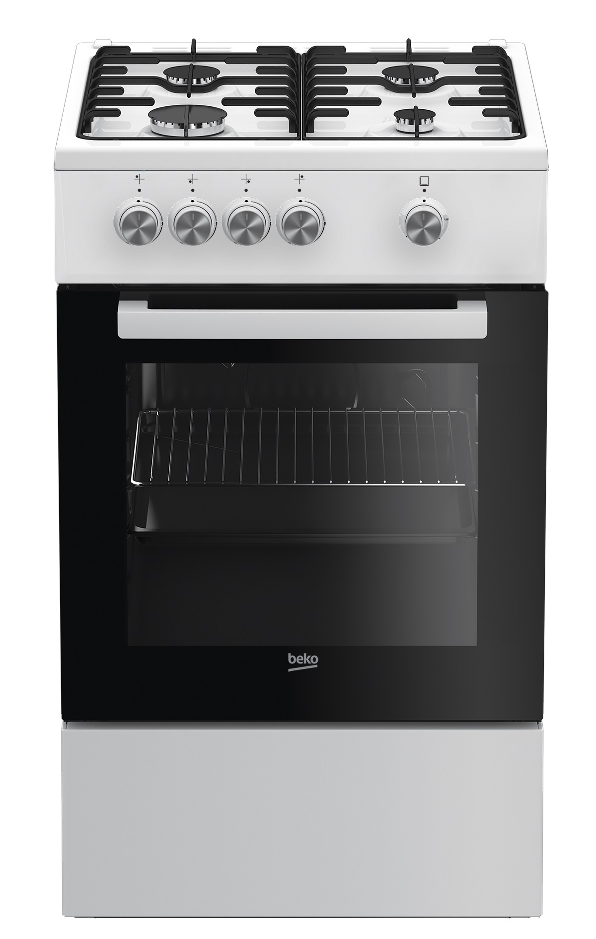 Beko FSG52000DWC. Type de produit: Cuisinière, Couleur du produit: Blanc, Type de commande: Rotatif. Type de plaque: Gaz, Nombre de brûleurs: 4 zone(s), Nombre de brûleurs de gas: 4 zone(s). Taille du four: Moyenne, Source d'alimentation du four: Gaz, Capacité nette du four: 68 L. Puissance raccordée (gaz): 10400 W. Largeur: 500 mm, Profondeur: 600 mm, Hauteur: 850 mm Table gaz Composées de foyers avec un support en émail ou en fonte, les tables gaz sont équipées d'un dispositif de sécurité de gaz qui vous permet de cuisiner en toute sérénité. Sécurité thermocouple Si la flamme s’éteint accidentellement à cause d’un courant d’air ou par un liquide qui déborde, l’arrivée de gaz est automatiquement coupée pour prévenir tout accident. Nettoyage par catalyse Afin de vous éviter la corvée de nettoyage, ce four est équipé de parois catalytiques autonettoyantes, qui absorbent les graisses automatiquement.