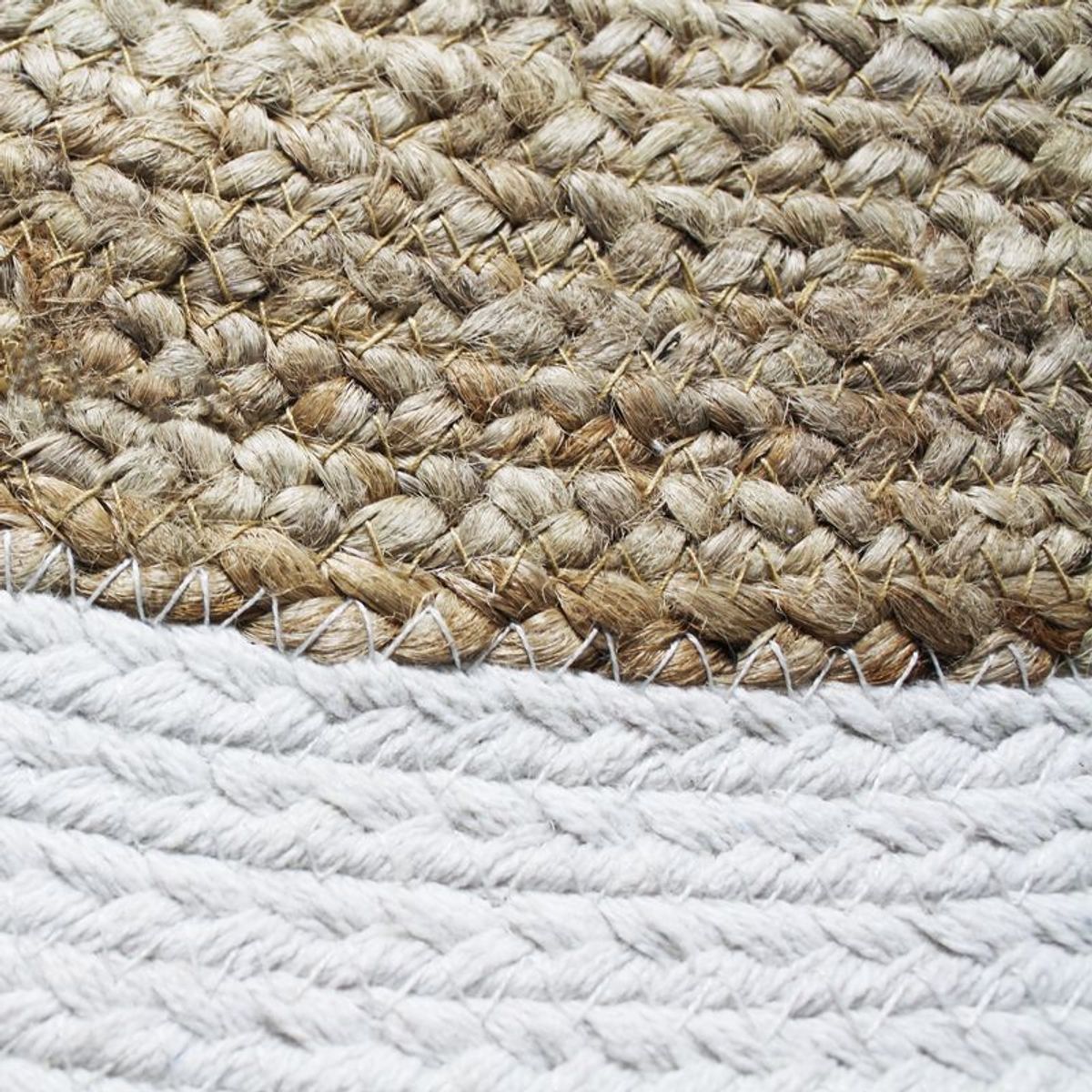 Sublime tapis rond tressé en jute et coton parfait pour rendre une ambiance chaleureuse et ethnique.