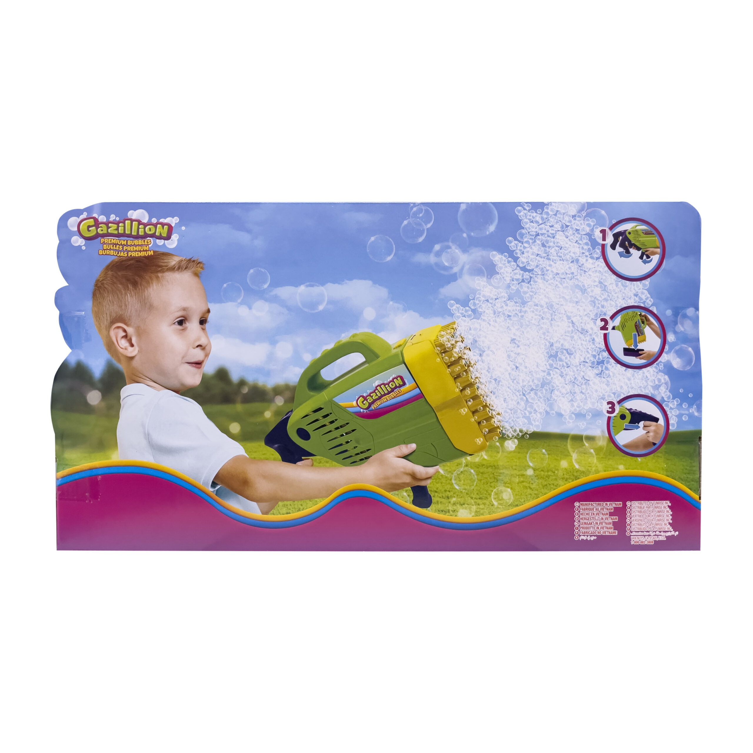 Équipe-toi de ton blaster, trempe-le dans le bac de solution savonneuse et souffle un nuage de bulles. 273 ml de solution savonneuse inclus.