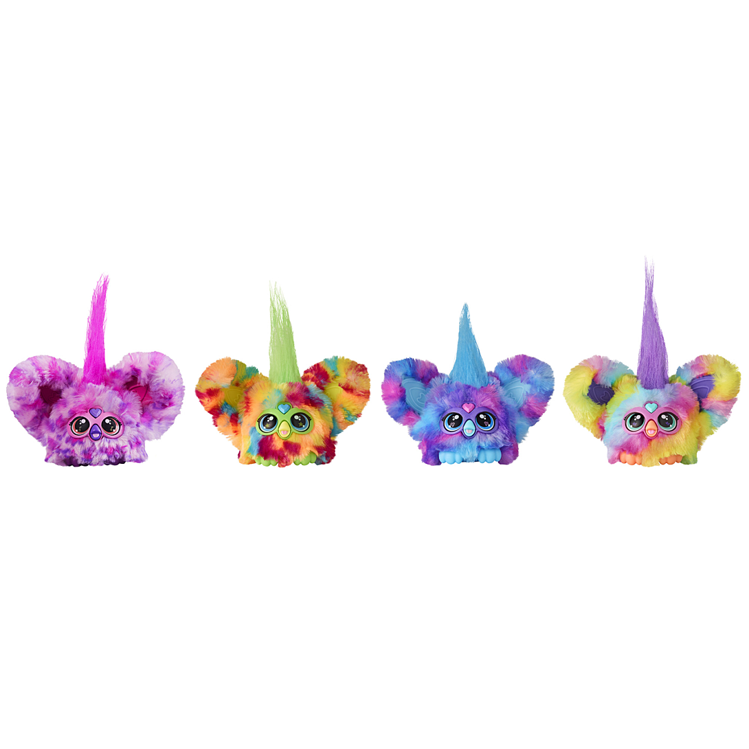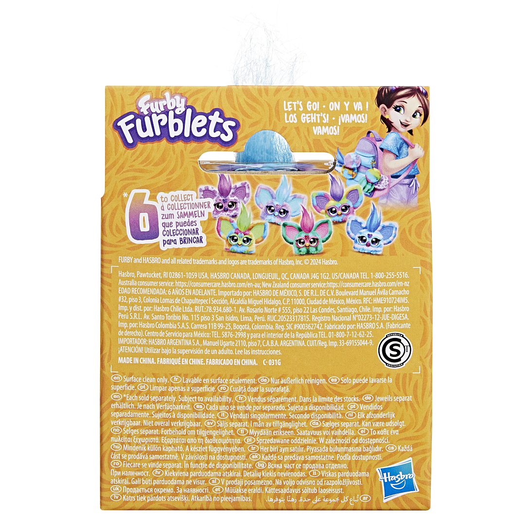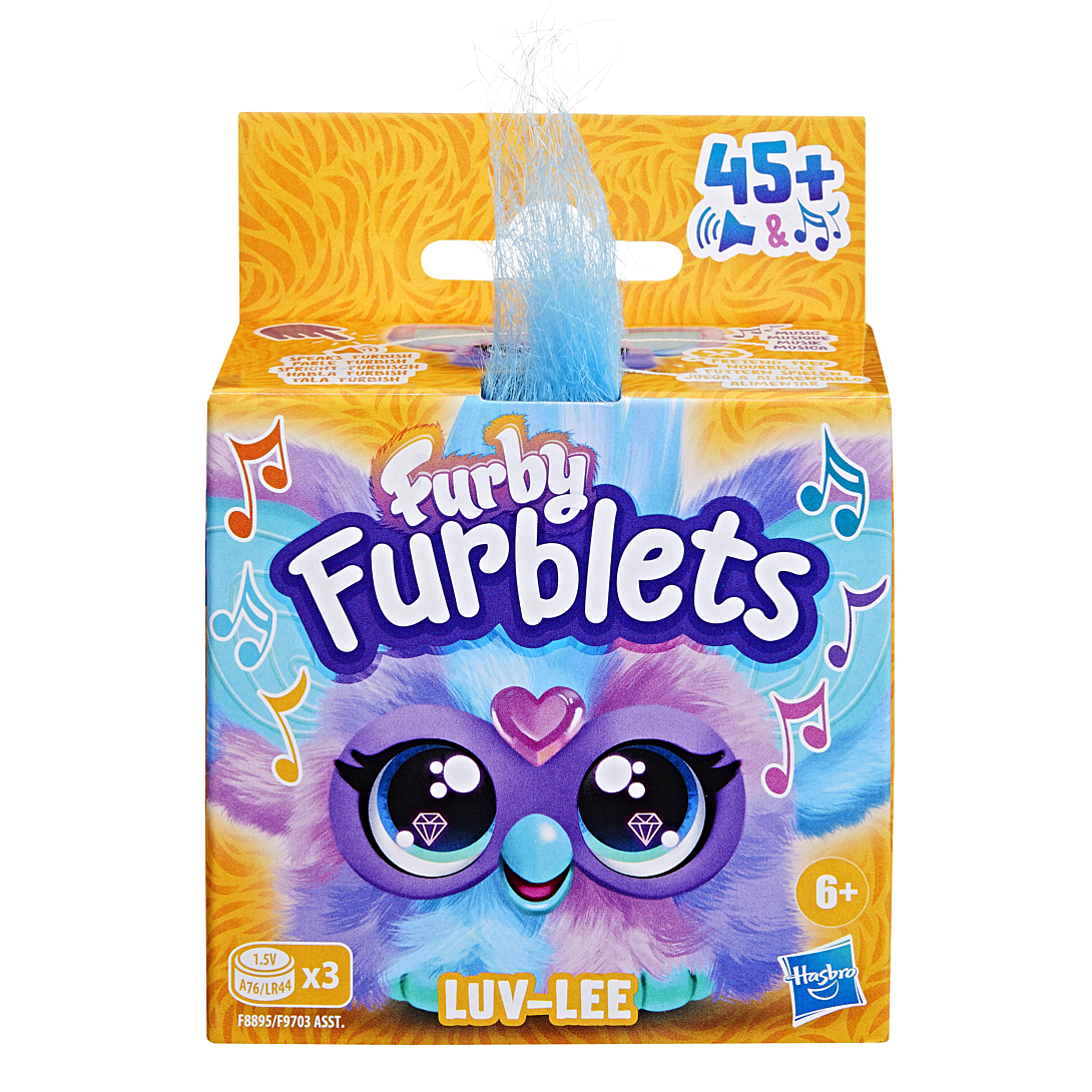 | Plus produit | MINI COMPAGNON FURBY : Les Furblets sont de mini Furby avec leurs propres personnalités musicales et styles de fourrure ! Ce sont de super petits cadeaux pour toutes les occasions JOUE DE LA MUSIQUE ET PARLE EN FURBISH : C\'est une petite peluche qui joue de la musique et qui prononce des phrases amusantes dans la langue de Furby (ne parle aucune langue humaine). Inclut 3 piles-boutons A76/LR44 3 FAÇONS D\'ACTIVER FURBLETS PLUS DE 45 SONS : On peut appuyer sur le bec pour l\'entendre faire des bruits en mangeant et sur le cur pour de la musique. Le capteur sur le dessus de la tête active des phrases amusantes en Furbish et sert aussi d\'interrupteur marche-arrêt ATTACHE POUR LES DÉPLACEMENTS : Cette petite peluche de 5 cm pour filles et garçons a une attache amovible pour les sacs à dos ou autres sacs de voyage. Lavable en surface seulement. LES OREILLES S\'OUVRENT : On peut replier une ou les deux oreilles, puis appuyer sur la tête de la peluche pour qu\'elles se redressent et dévoilent le personnage |