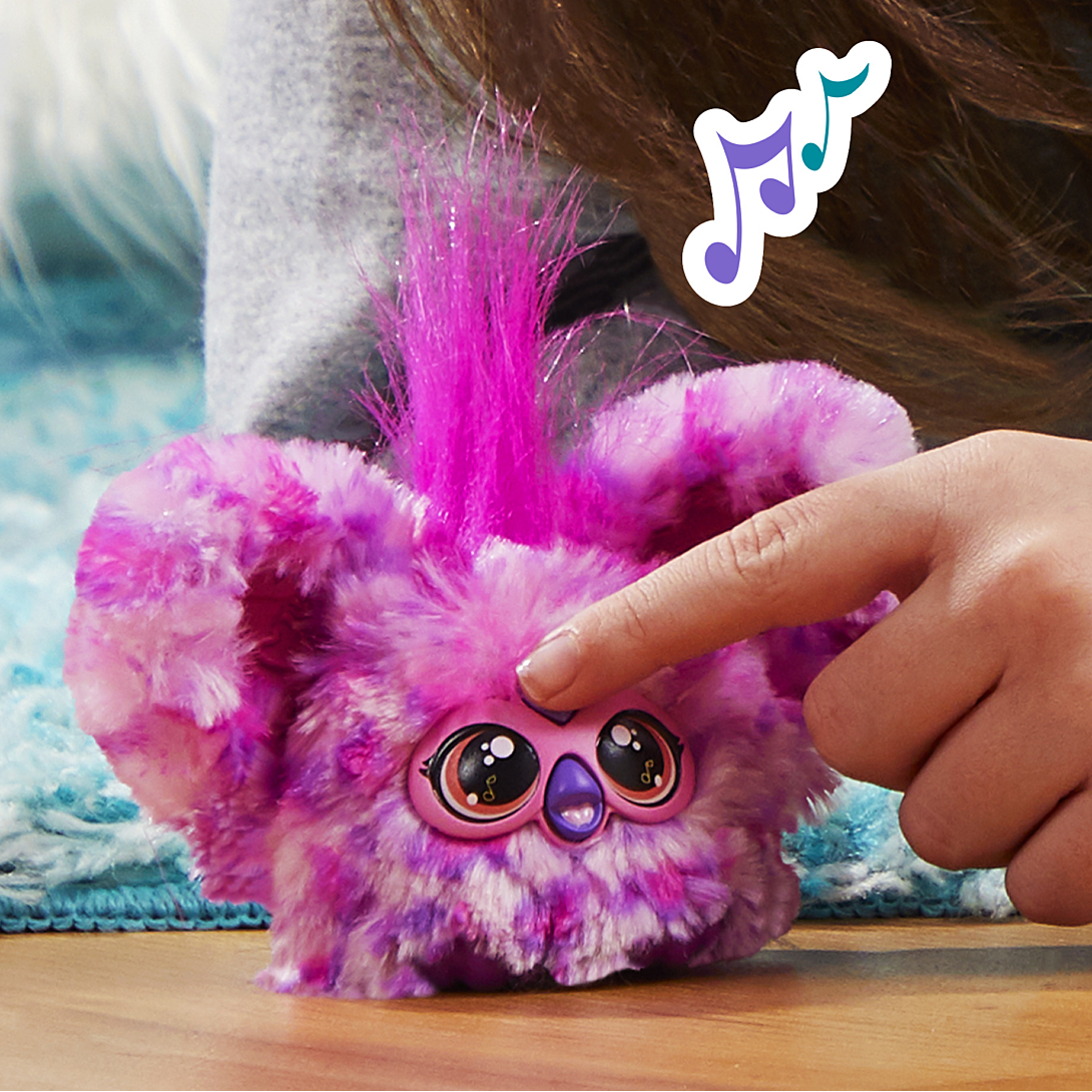| Libellé | Furby Furblets Hip-Bop Mini compagnon, plus de 45 sons, musiques hip-hop et phrases en Furbish, peluche électronique rose et violette pour filles et |