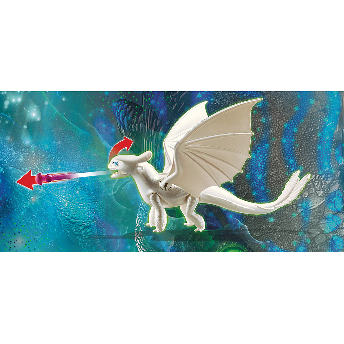 | Plus produit | "- Furie Éclair peut envoyer une boule de feu avec sa gueule\n- La mâchoire du dragon est mobile\n- Les ailes sont mobiles |