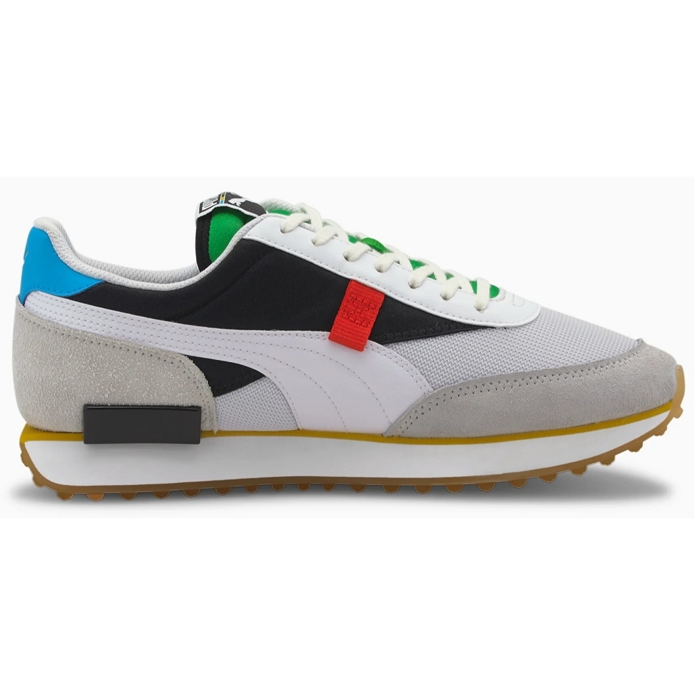 Ce modèle issu de la collection Future Rider de Puma réinvente une silhouette classique avec des couleurs attractives et des textures contrastées pour un look inimitable. Empeigne en mesh et lycra avec empiècements de cuir velours et de cuir synthétique. Coupe basse et fermeture par laçage classique. Semelle intermédiaire IMEVA pour un confort avec légèreté et amorti. Logo du symbole PUMA sur la languette. Logo avec le symbole PUMA sur le côté extérieur de la chaussure. Bande PUMA sur la face extérieure de la chaussure.