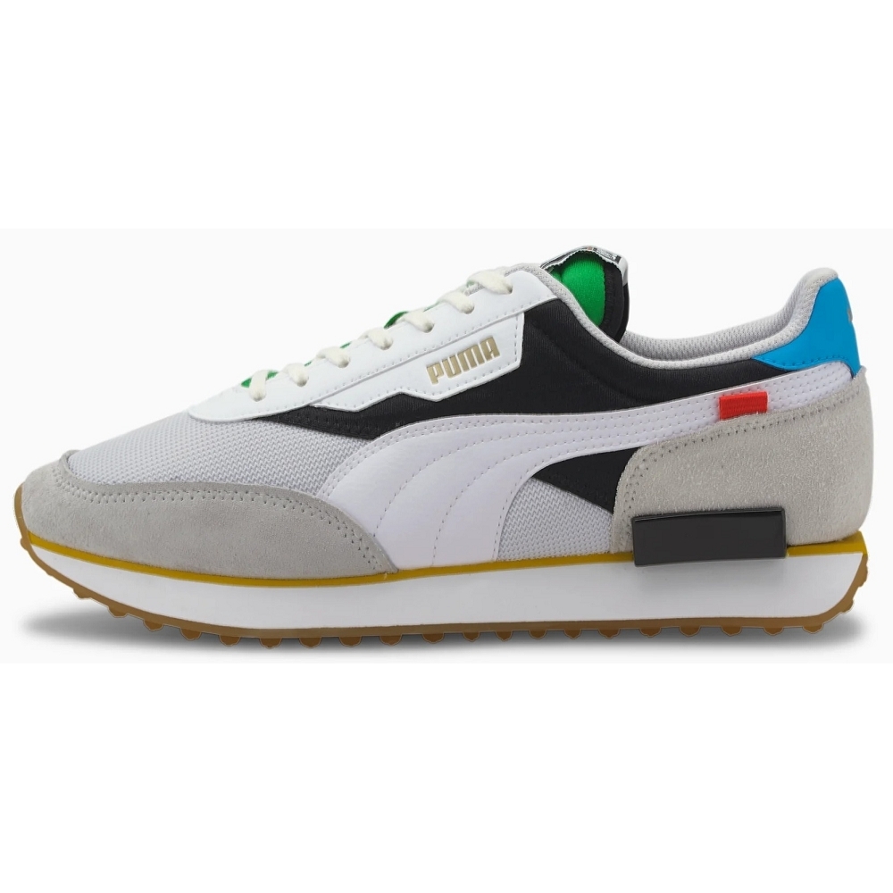 Ce modèle issu de la collection Future Rider de Puma réinvente une silhouette classique avec des couleurs attractives et des textures contrastées pour un look inimitable. Empeigne en mesh et lycra avec empiècements de cuir velours et de cuir synthétique. Coupe basse et fermeture par laçage classique. Semelle intermédiaire IMEVA pour un confort avec légèreté et amorti. Logo du symbole PUMA sur la languette. Logo avec le symbole PUMA sur le côté extérieur de la chaussure. Bande PUMA sur la face extérieure de la chaussure.