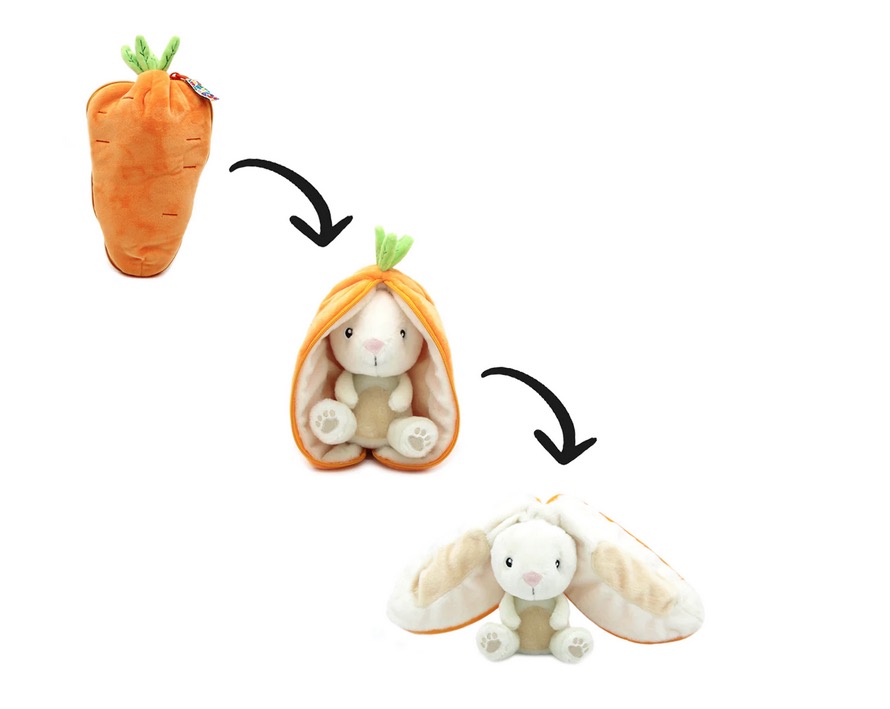 La peluche carotte se d�zippe et devient un lapin.