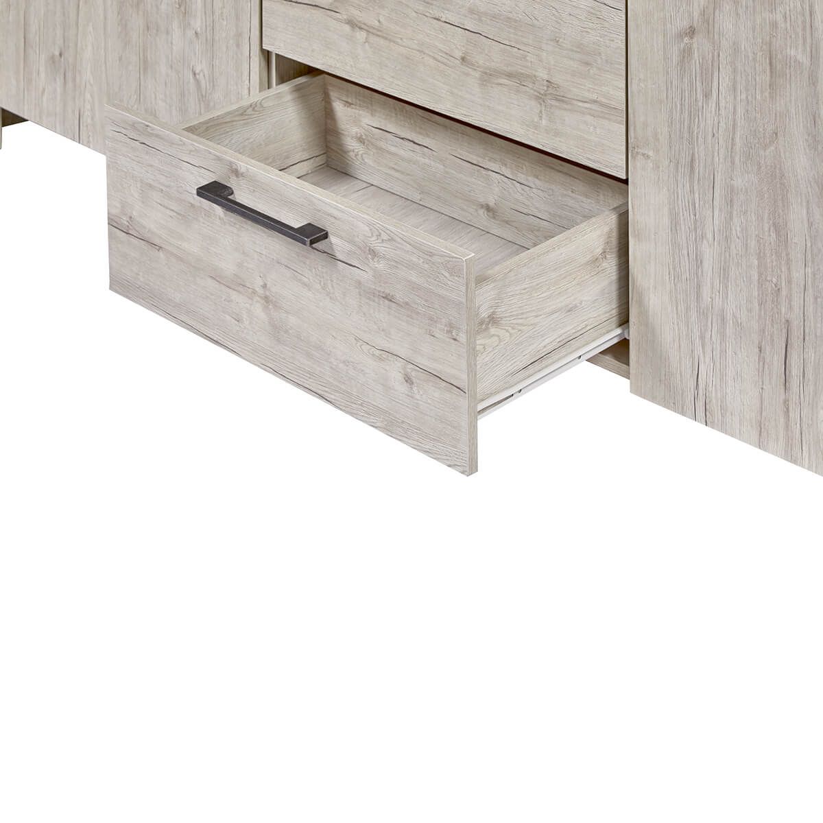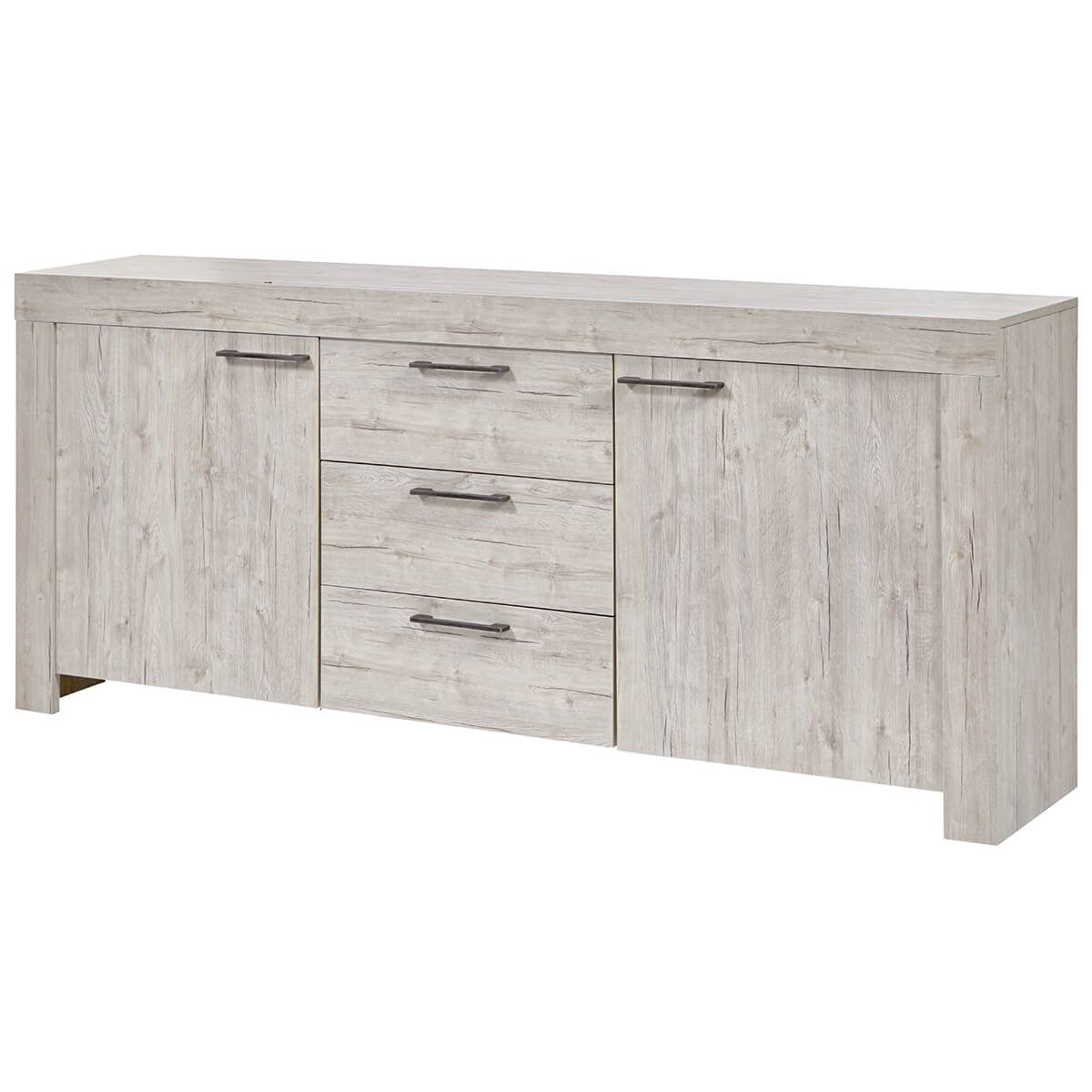 GALDRIC - Buffet 2 Portes 3 Tiroirs Effet Bois Grisé