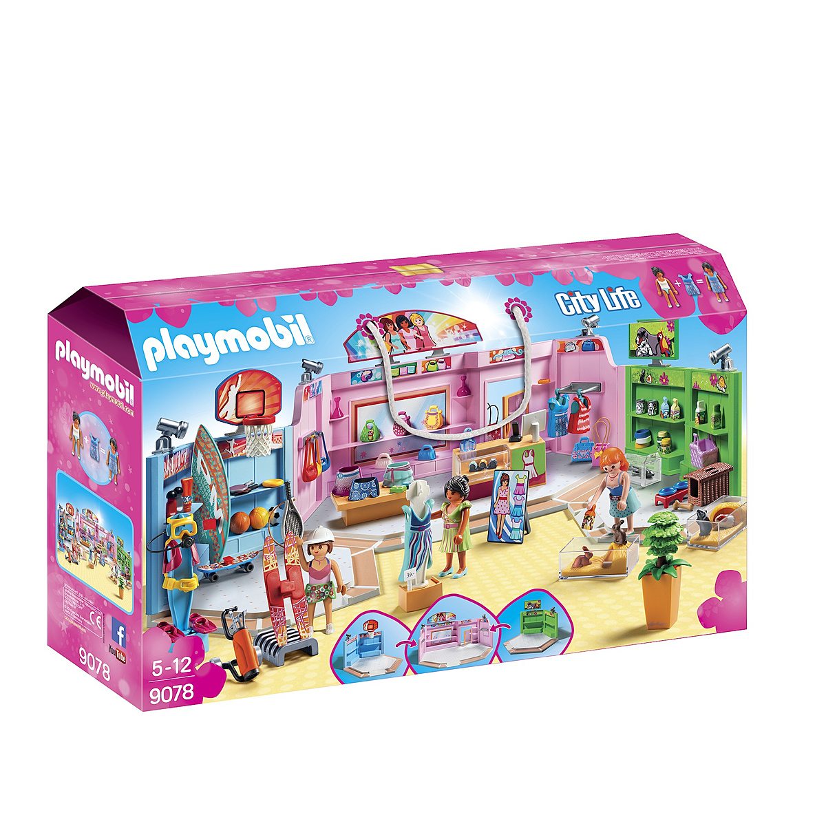 | Plus produit | . - Le centre commercial se compose de trois magasins pouvant être placés librement, sans fixation. \n\n1) Boutique de mode\n- Les robes en deux pièces pendent aux deux cintres ou sont placées sur le mannequin de la vitrine. \n- Les jupes peuvent être posées sur la table.\n- Une cabine d\'essayage est placée derrière la porte battante avec le grand miroir.\n- Neuf robes en deux pièces et jupes différentes sont disponibles et peuvent être combinées avec différents sacs à main. \n2) Animalerie \n - Nombreux accessoires et animaux de compagnie.\n3) Magasin de sport \n- Nombreux articles de sport : ballon, planche de surf, skate... |