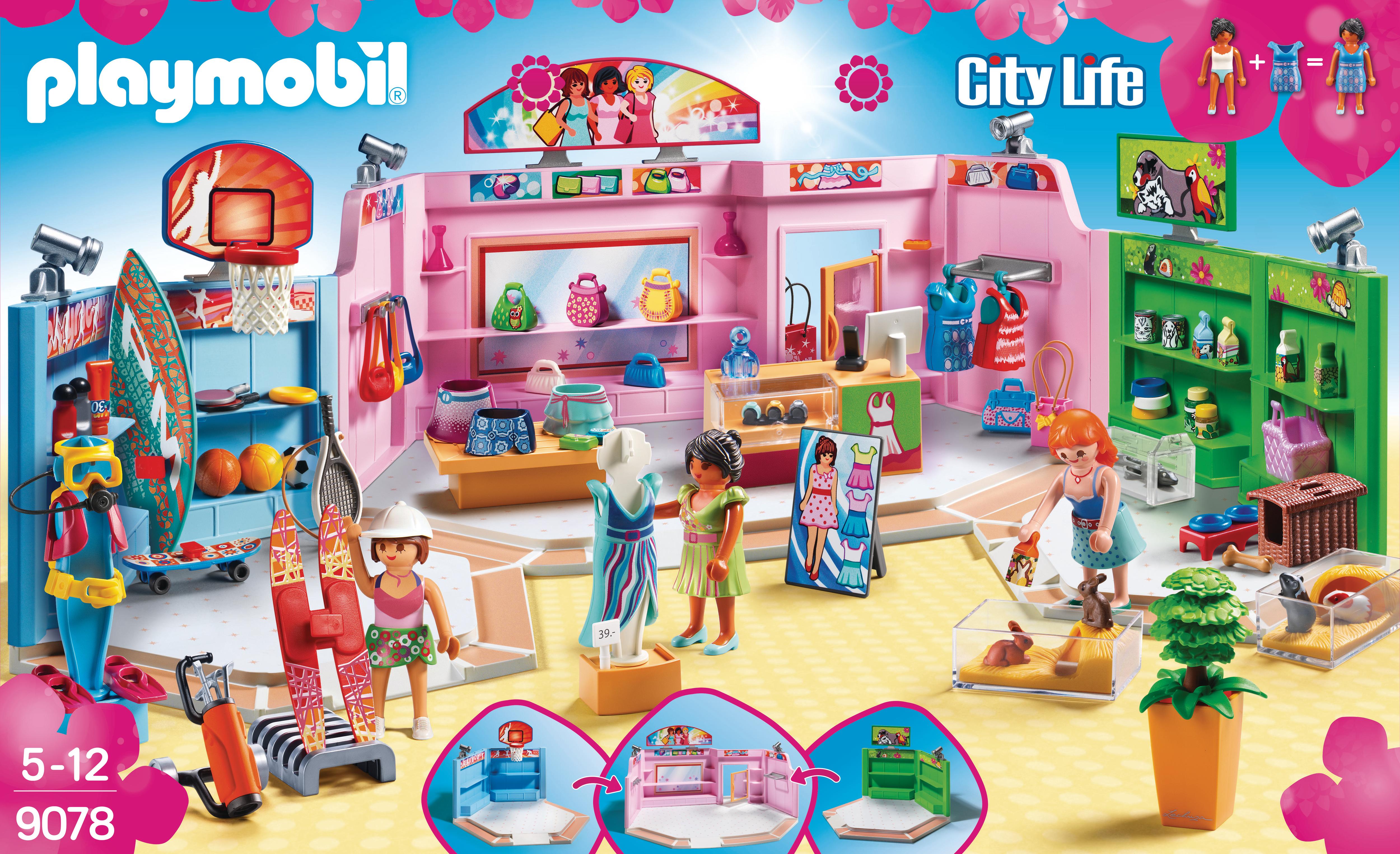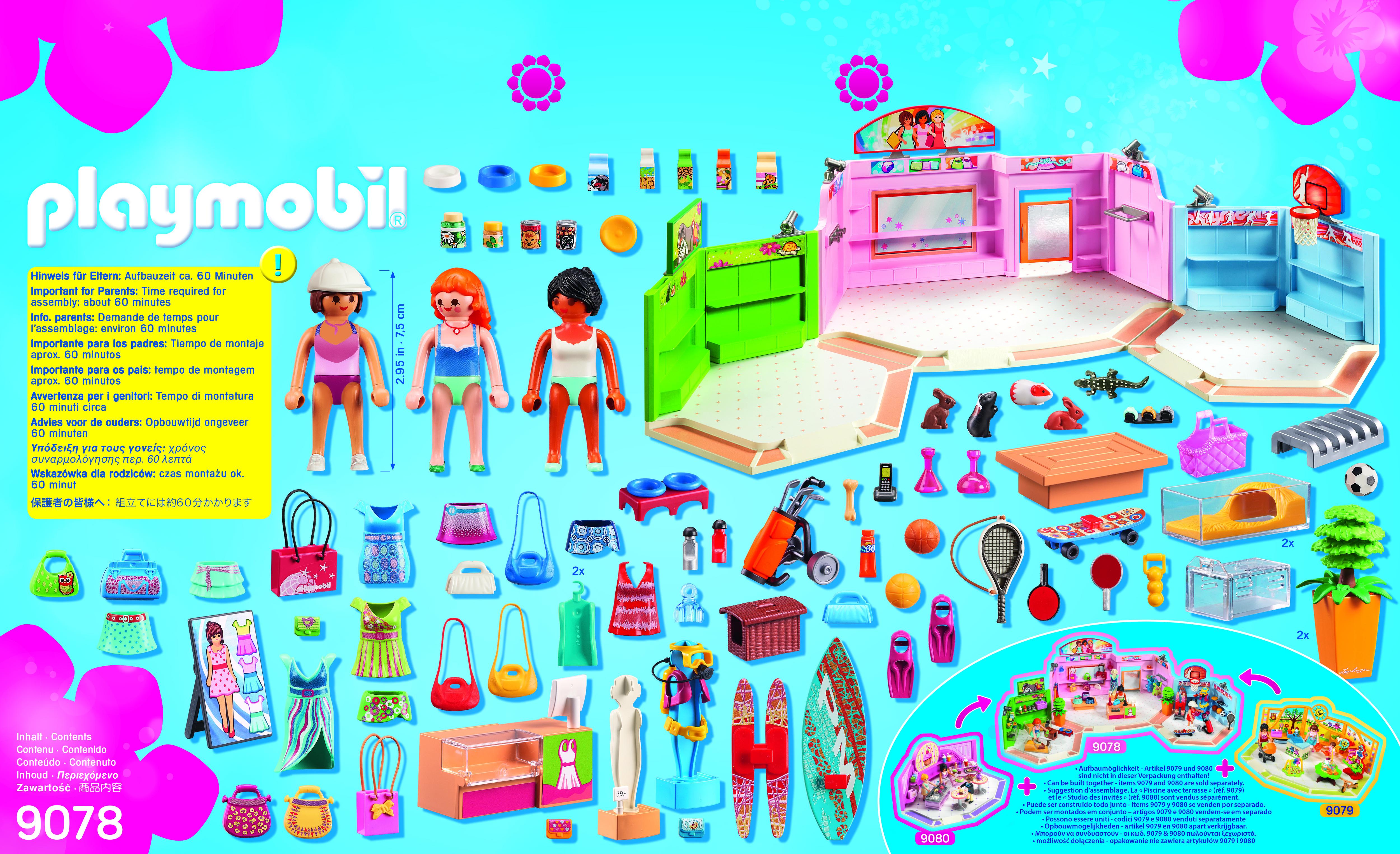 | La boîte contient | Contient 3 magasins, 3 personnages et de très nombreux accessoires (caisse enregistreuse, vêtements, animaux, meubles, ballons) |